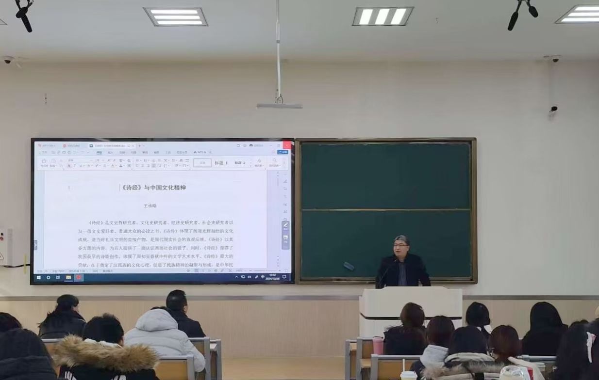 12月26日下午,人文与传播学院邀请山东大学儒学高等研究院教授、博士生导师,古典文献研究所所长教授王承略带来题为《<诗经>与中国文化精神》的学术讲座。讲座由该院副院长张颖慧主持,百余名师生参加了此次讲座。