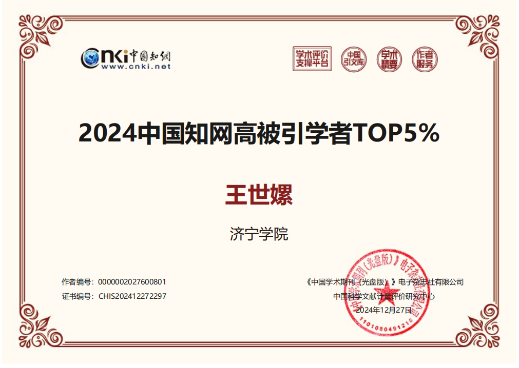 中国知网 2024 年启动了“中国知网高被引学者”评选活动。此次评选活动旨在客观、科学地衡量并表彰近十年来国内科研成果丰富、学术影响力杰出的学者群体。近日,中国知网公布了“2024年度知网高被引学者”名单。其中,教师教育学院教授王世嫘荣获“2024年度知网高被引学者”称号。