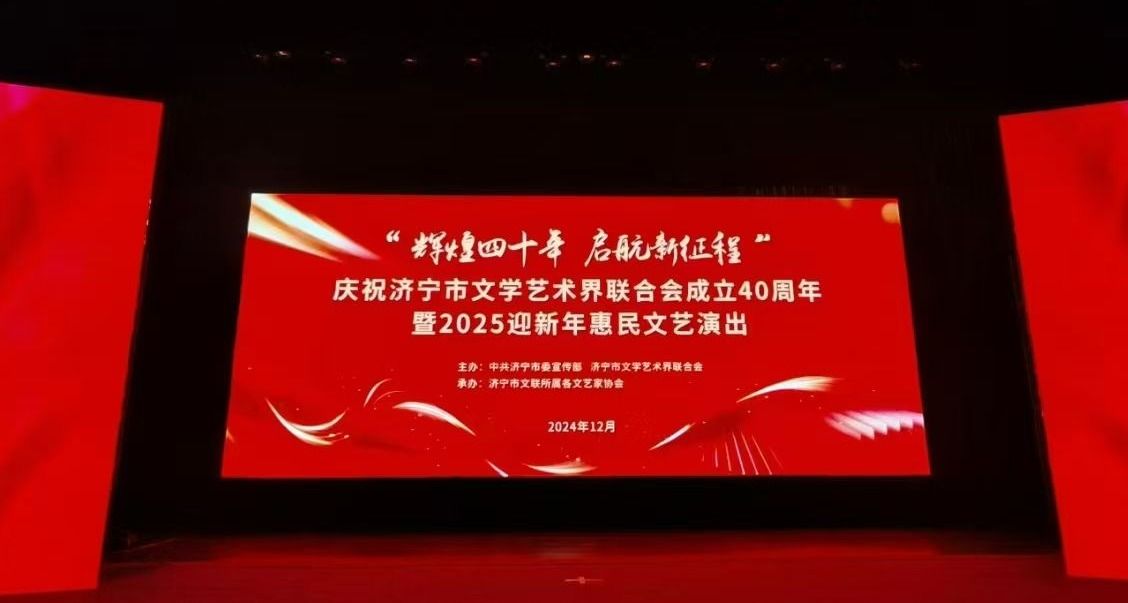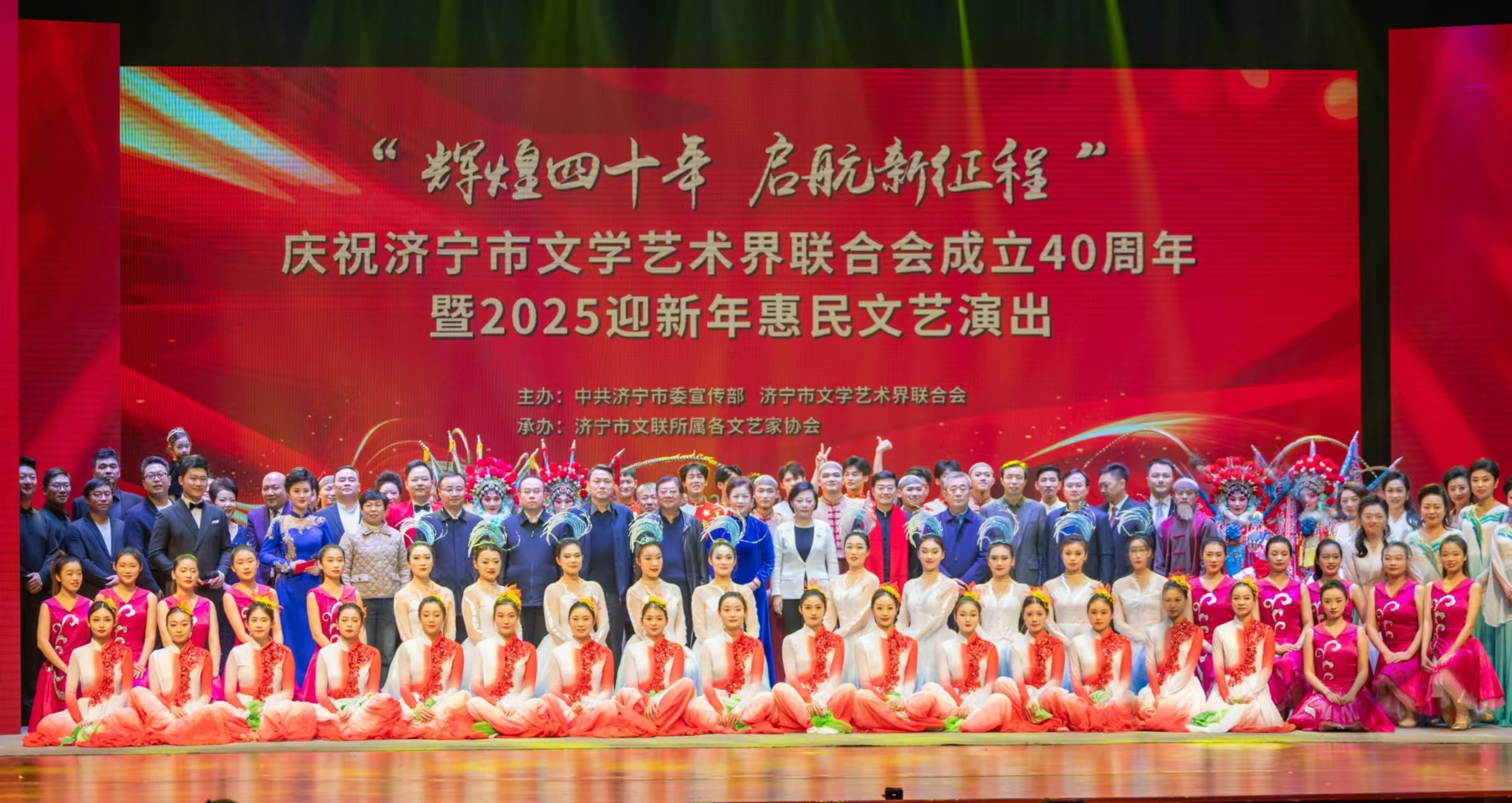 12月30日晚,济宁市声远舞台灯光璀璨,座无虚席。由中共济宁市委宣传部、济宁市文学艺术界联合会主办的“辉煌四十年 启航新征程”庆祝济宁市文学艺术界联合会成立40周年暨2025迎新年惠民文艺演出在此隆重举行。此次文艺演出不仅展示了济宁市在文学艺术领域的丰硕成果,也标志着济宁市文联四十年来的辉煌历程和未来发展的新起点。