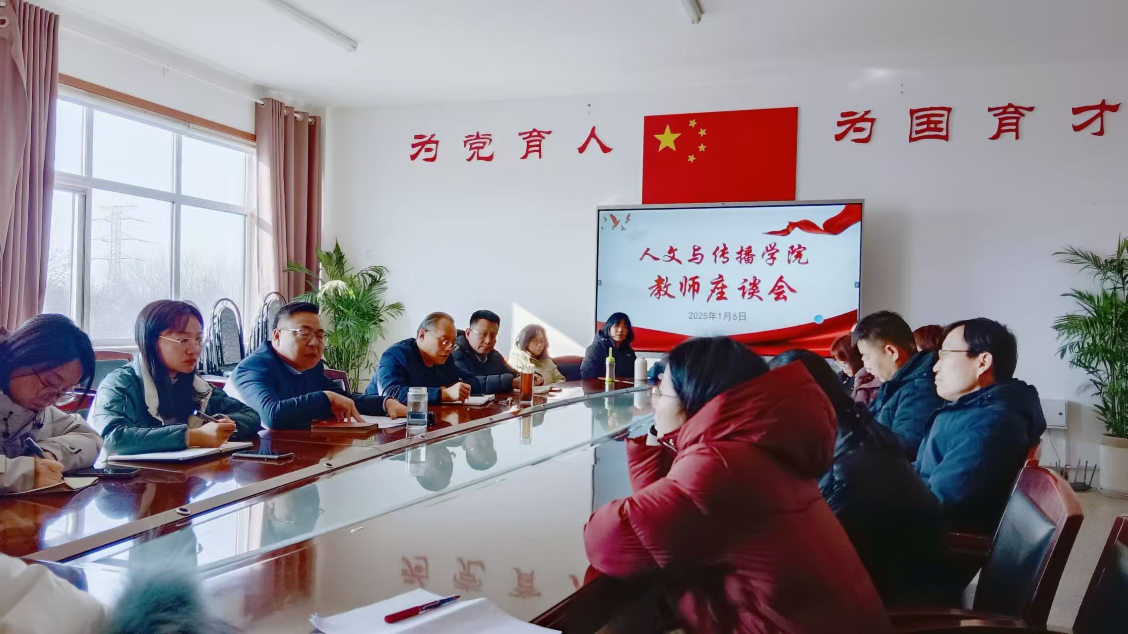 1月6日,人文与传播学院教师代表座谈会在学院四楼会议室召开。人文与传播学院党委班子成员、各教研室主任及骨干教师代表参会。人文与传播学院院长王永超主持会议。