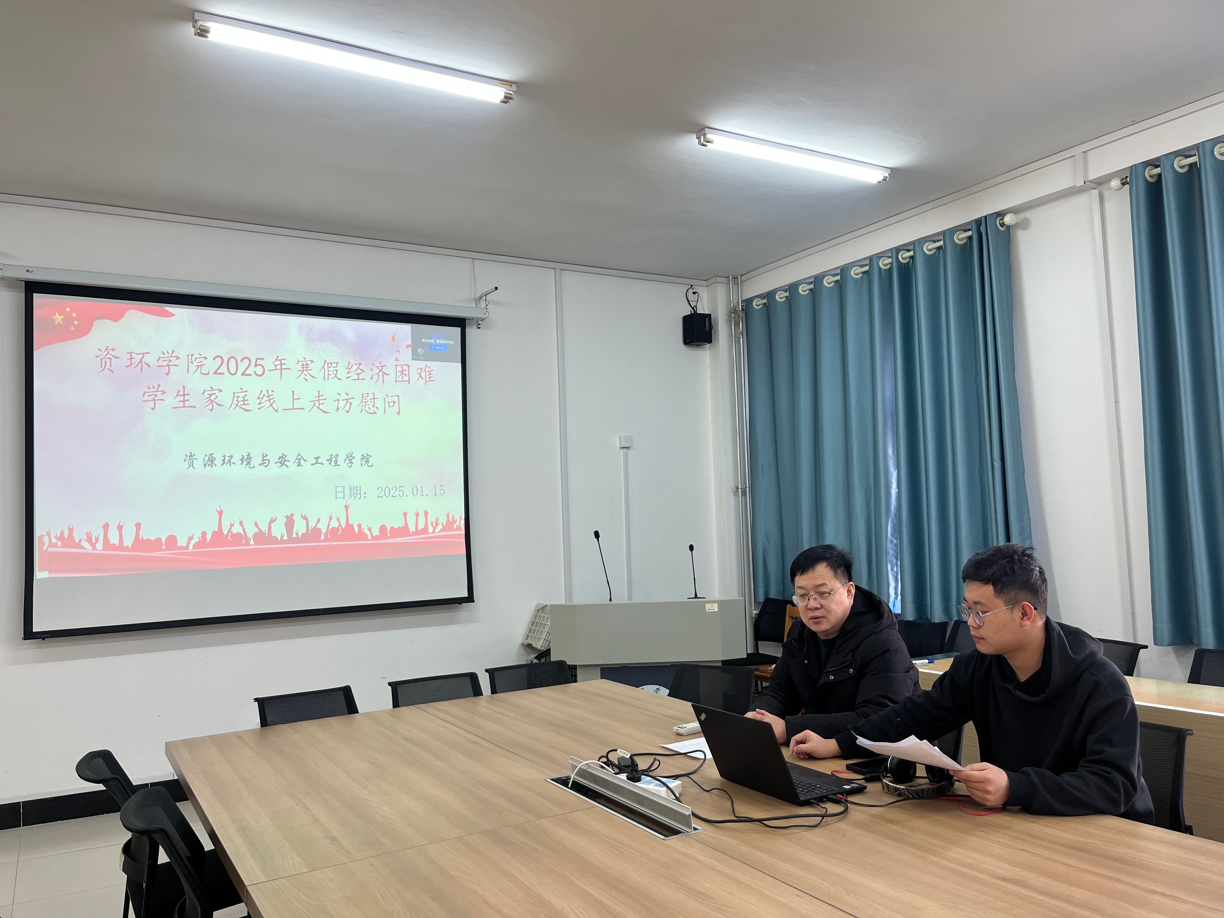 为深入贯彻落实立德树人根本任务,进一步拓宽思想政治教育工作渠道,加强家校沟通,将学校对家庭经济困难学生的温暖过冬资助政策落实落细,确保家庭经济困难学生度过一个温暖祥和的假期,1月15日上午,资环学院开展了主题为“云端传情,暖冬同行”的2025年寒假经济困难学生家庭线上走访慰问。学院党委副书记许言强、辅导员鲁广路以“线上连线”的形式开展家庭经济困难学生走访慰问活动。