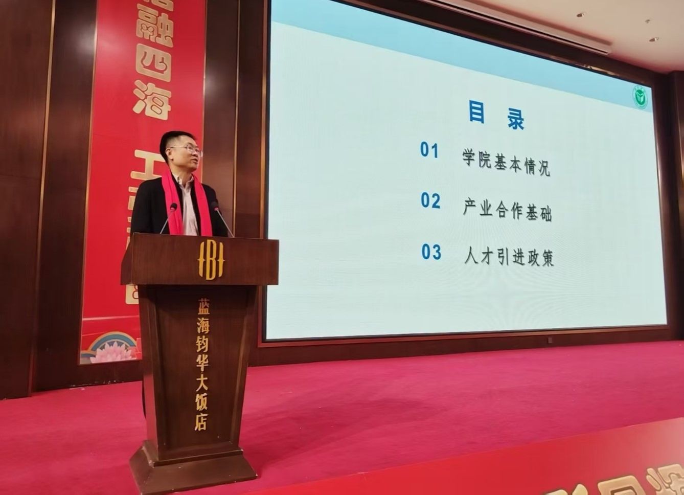 活动开始前,赵强就学院的专业、师资、人才培养和前期校企合作等情况向泗水县统战部部长张乙彬,县人大常委会副主任、工商联主席单英姿,县委统战部副部长、工商联党组书记程涛,县商务局局长马兆国等政府和部门领导做了介绍,并与济宁鸿润食品股份有限公司、山东无穷食品有限公司、山东盼盼食品有限公司、泗水县锦川花生食品有限公司等重点食品企业负责人进行了座谈,希望能与泗水食品企业在科技研发、平台建设、学生就业和高层次人才引进等方面开展深度合作。会上,赵强以“智汇泗水,食聚泉乡”为题,就学院基本情况、产学研合作基础、高层次人才引进政策进行了专门介绍。