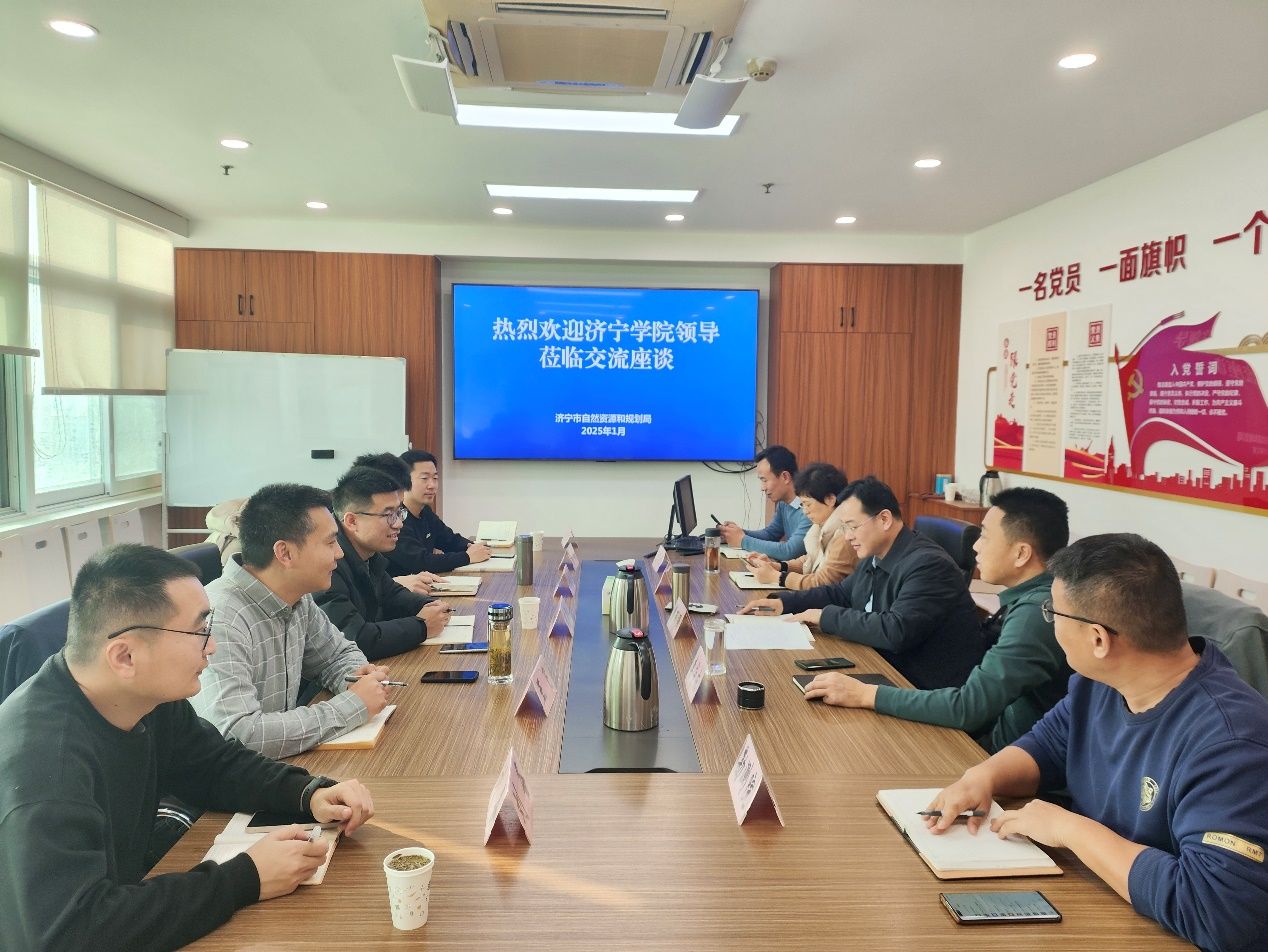 为进一步深化产教融合,提升学院服务地方能力,11月22日下午,资源环境与安全工程学院副院长武泉林率测绘工程专业骨干教师一行赴济宁市国土空间数据和遥感技术中心(以下简称 “数遥中心”)开展合作交流。数遥中心主任曹百强、地理信息科科长李华东及科室骨干出席了会议。双方就人才培养、师资共享、科研合作及项目合作等内容进行了深入的探讨。