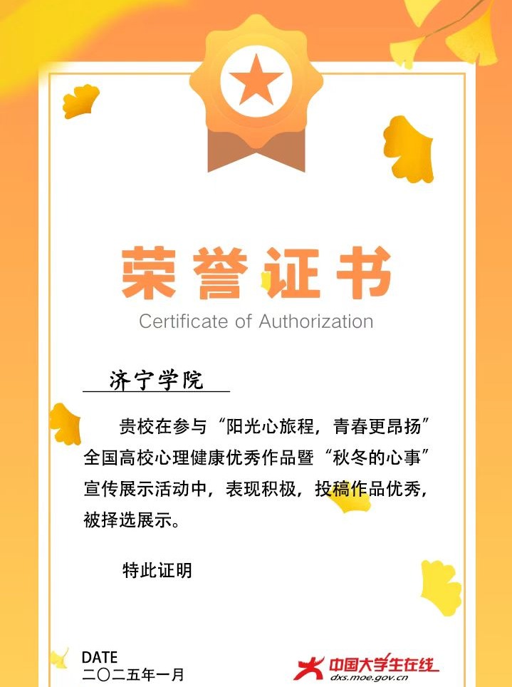 2024年中国大学生在线举办了以“阳光心旅途,青春更昂扬”为主题的全国高校心理健康优秀作品暨“秋冬的心事”宣传展示活动,我校四项作品成功入选展示。