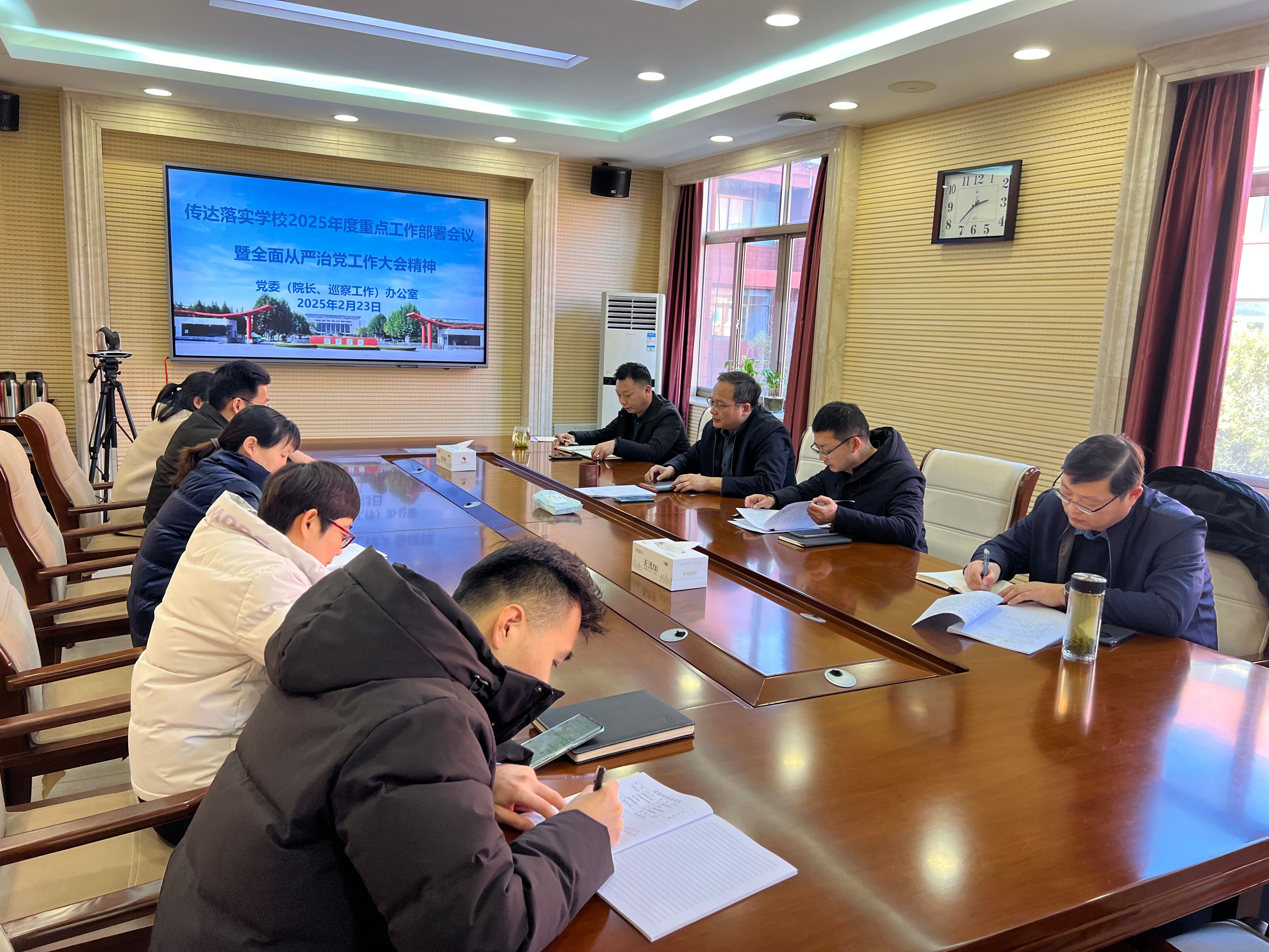 2月23日下午,党委办公室(院长办公室 巡察工作办公室)召开传达落实学校2025年度重点工作部署会议暨全面从严治党工作大会精神会议,研究安排办公室2025年工作。党委办公室(院长办公室)主任张永刚主持会议,办公室全体工作人员参加会议。