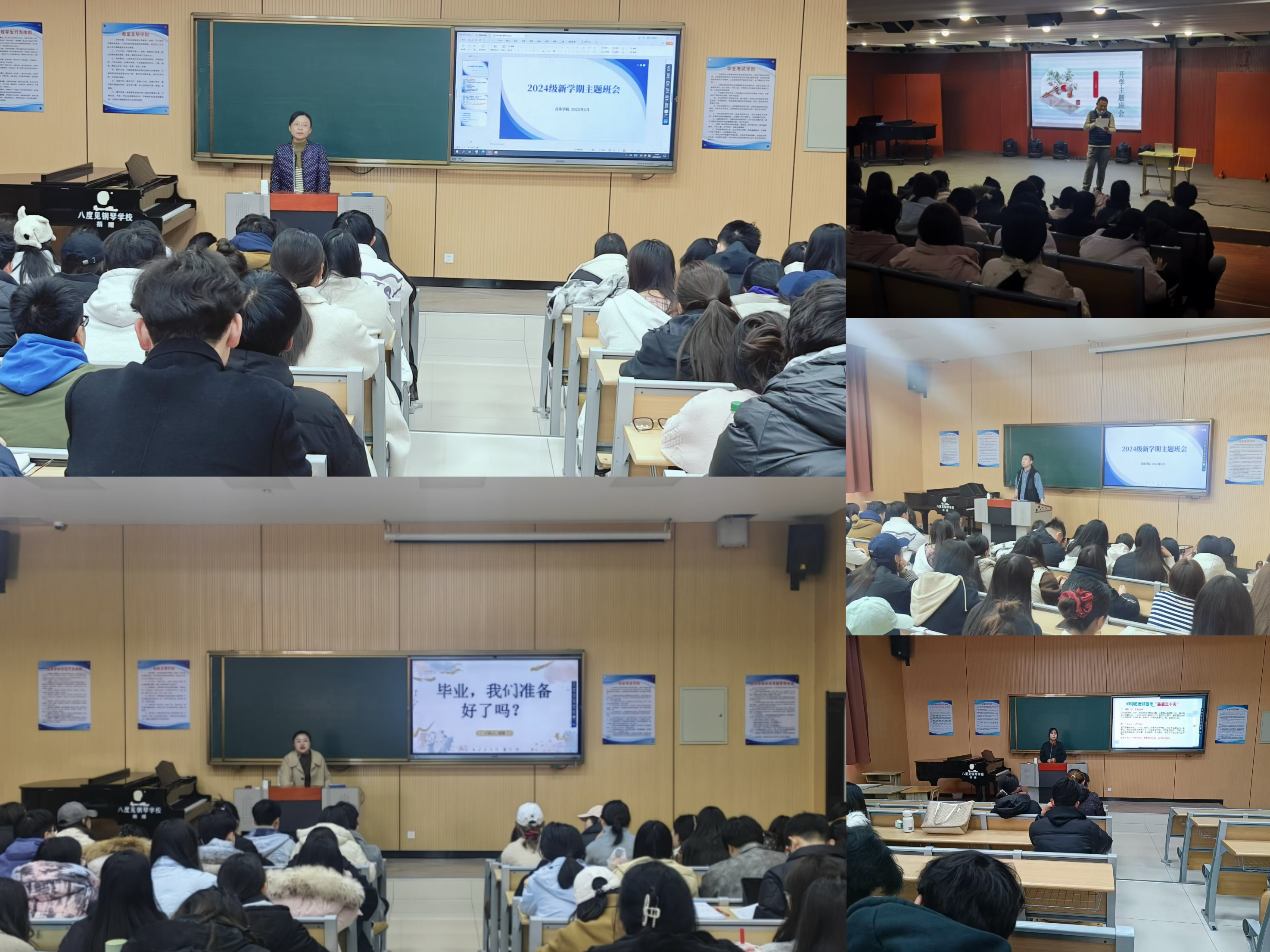 新学期新气象,在结束了漫长的假期生活后,为了使同学们尽快“收心”,从假期的闲适安逸的状态中转换出来,更快更好的步入学习的正轨,2月25至27日,各年级辅导员、班主任分别召开了新学期主题班会,结合年级特点、专业特色重点引导,就学风建设、学业规划与职业发展、实习就业、心理健康与情绪管理、时间管理、创新创业与实践、安全教育等内容作出具体要求,引导学生规划新学期的学习生活,在新的学期取得新的成就。