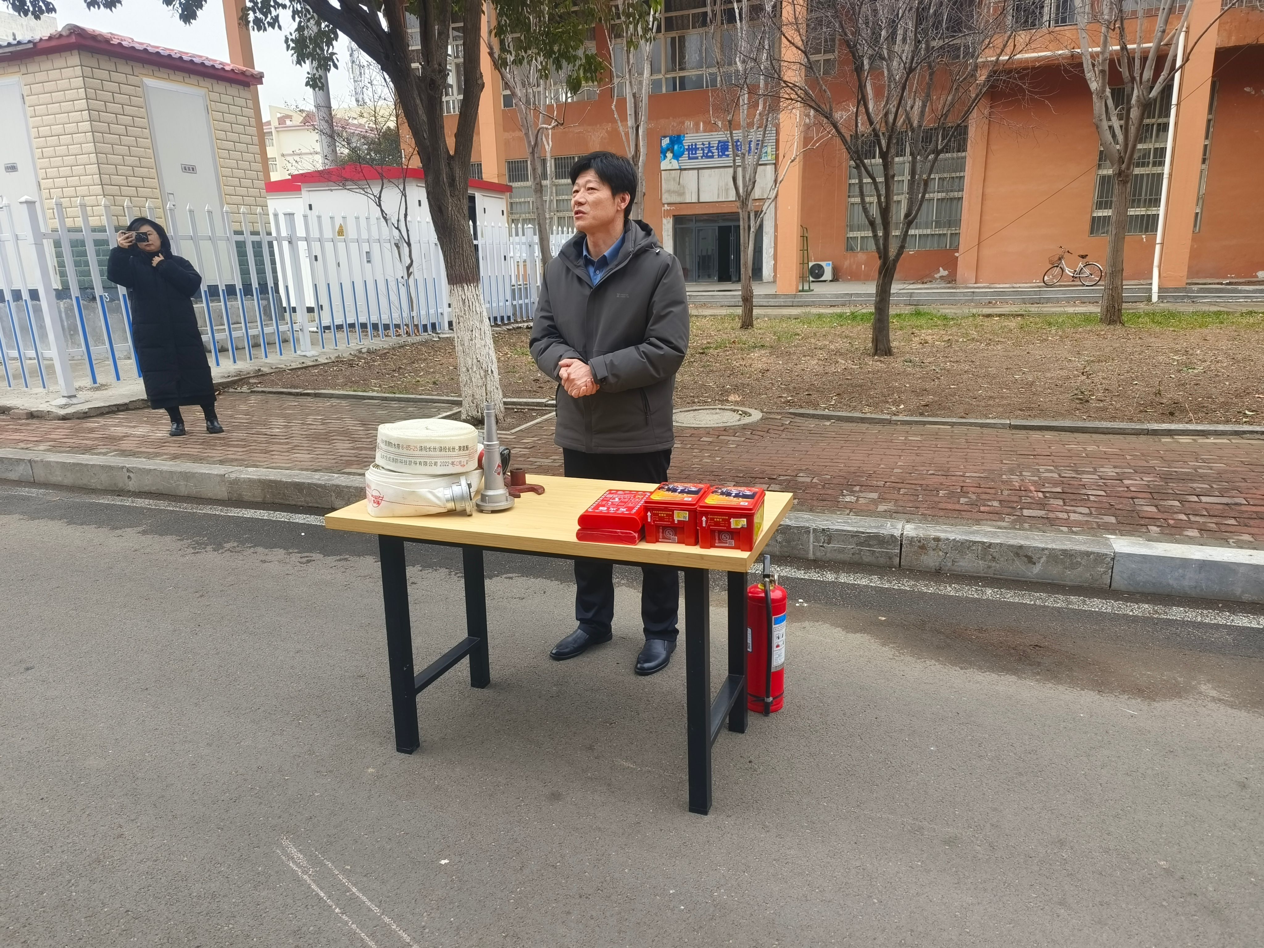 申建民作了培训动员。刘智明结合学校餐厅特点,围绕火灾预防、初期火灾扑救等内容进行了详细讲解,并现场演示了灭火器、灭火毯、消防栓和防烟面罩等消防器材的正确操作方法。通过“手把手教学、一对一纠错”方式,参训人员了解掌握了应急安全知识和处置技能。培训结束后,全体参训人员模拟油锅起火、燃气泄漏等突发场景,组织开展灭火器使用、消防水带连接、人员疏散等演练活动。