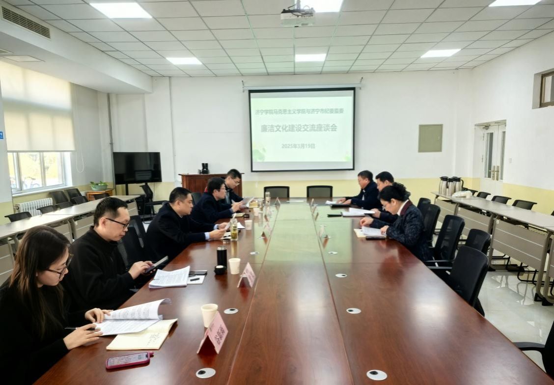 3月19日下午,济宁市纪委监委宣传部部长种滨一行5人来马克思主义学院就廉洁文化建设进行交流座谈。座谈会在马克思主义学院会议室举行。马克思主义学院副院长沙世蕤、党委副书记郝鹏,部分二级学院党委副书记等参加座谈。