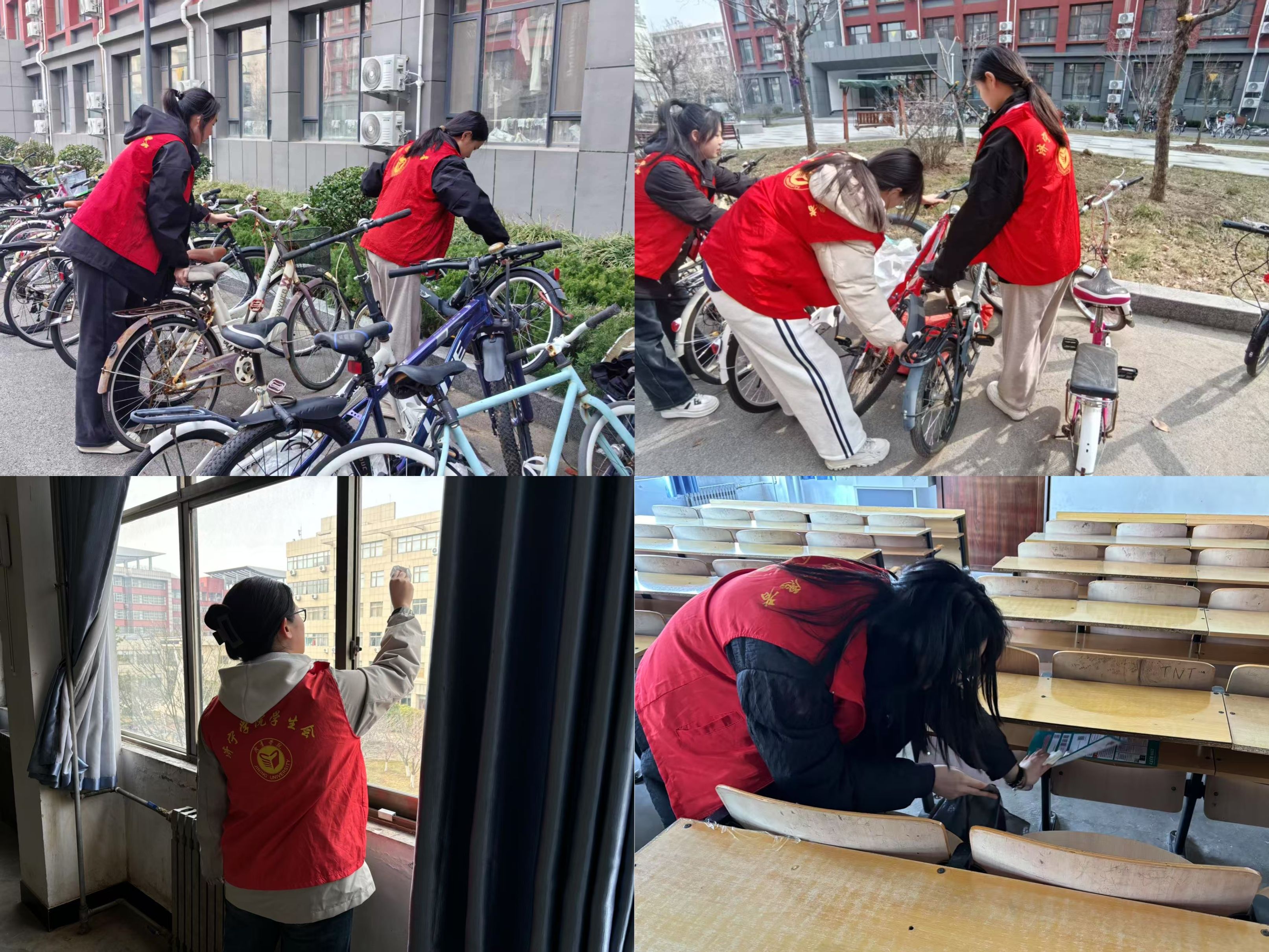 在“践行雷锋精神,共创整洁校园 ”志愿服务活动中,马克思主义学院志愿实践部与生态文明协会携手开展“践行雷锋精神,共创整洁校园”活动,在社团的号召下同学们积极踊跃参与。志愿者在宿舍楼下规整单车,在校园草坪和道路清理落叶、烟头、废纸,走进教室打扫卫生。在此次活动,他们以实际行动践行雷锋精神,以校园环境整洁行动,提升同学环保意识,带动大家为建设美丽校园贡献青春力量。