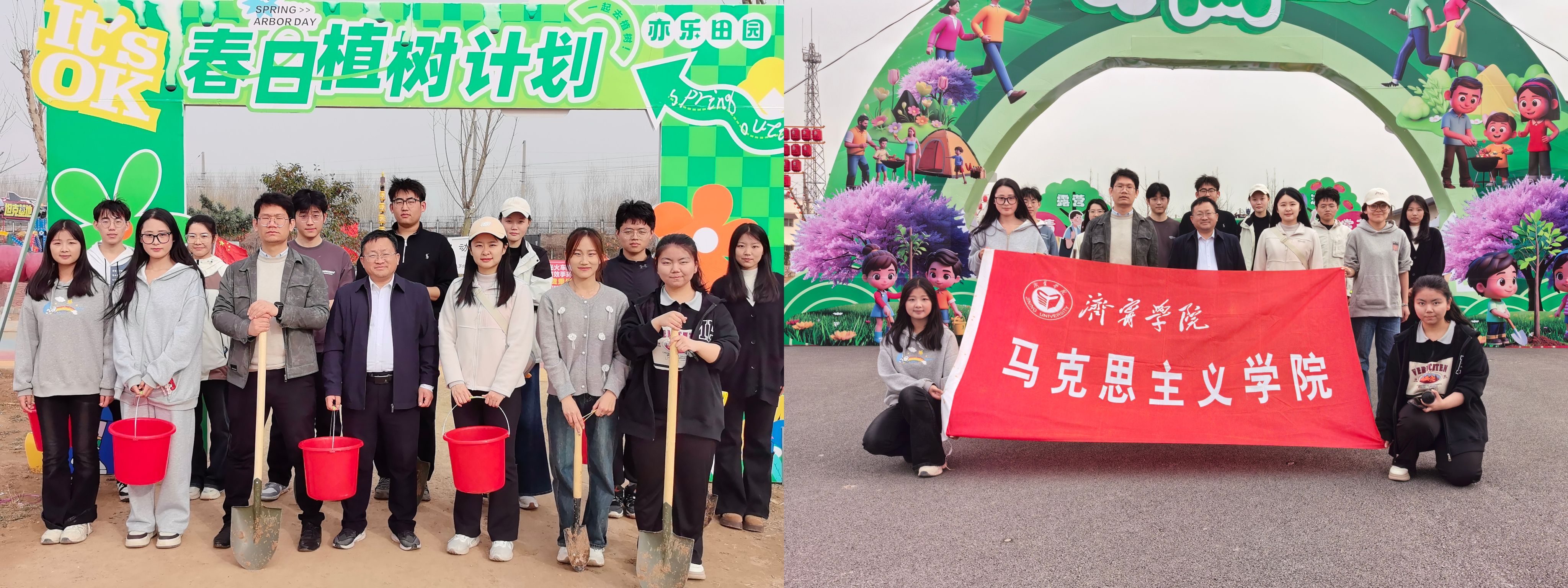 一锹土滋养生态期盼,一桶水浇灌春日诺言。在植树节当日,马克思主义学院师生携手行动,为校园添上一抹新绿!在亦乐田园挥锹铲土、扶苗浇水,用双手种下希望,用镜头记录美好,共同谱写春日里的绿色篇章。铁锹破土,协作挖坑,扶苗培土,细心浇灌。种下的不仅是树苗,更是对未来的期许。愿你我携手,守护这片绿意,让环保的种子在每个人心中生根发芽。