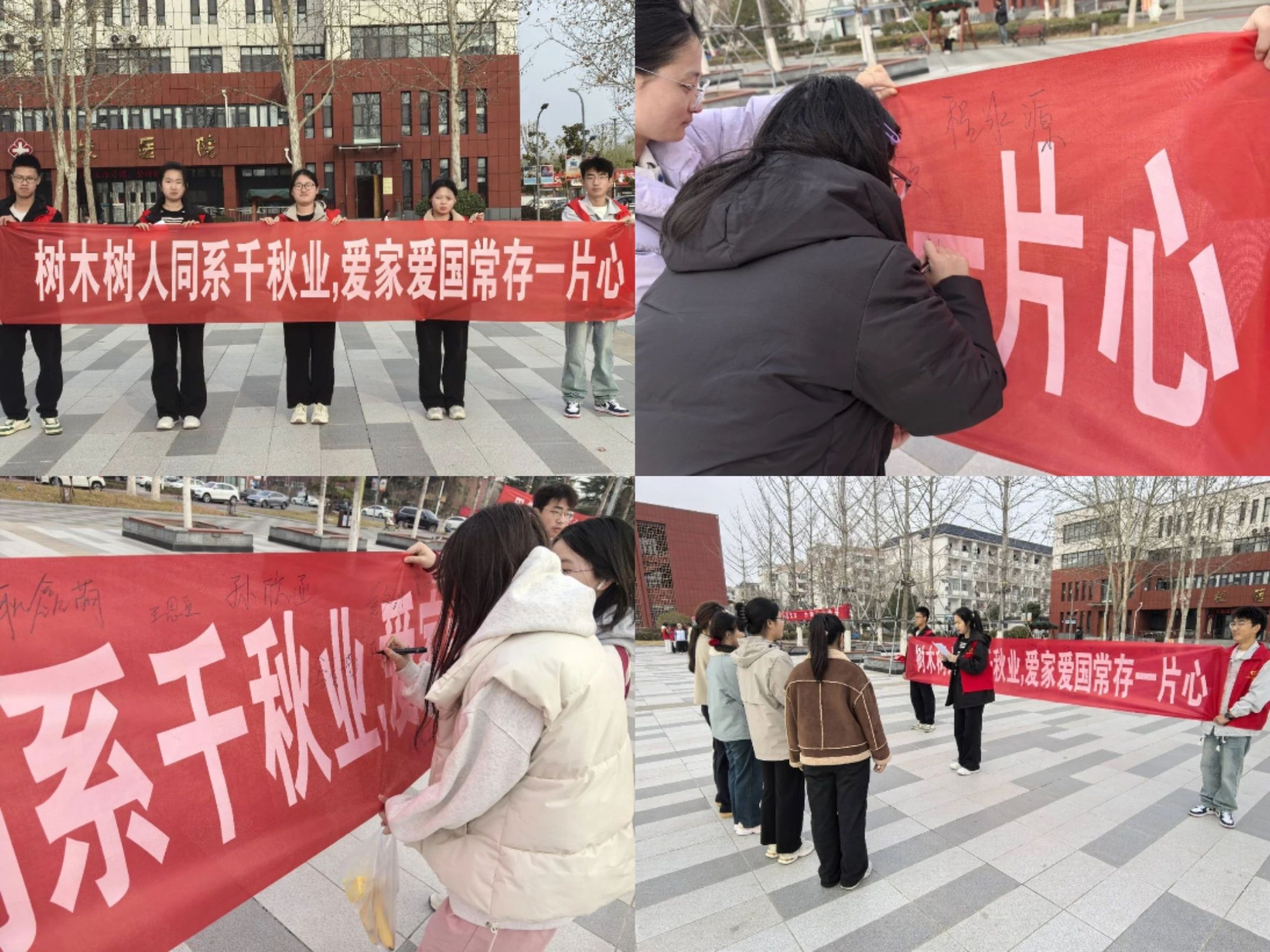 在雷锋月与植树节相逢之际,马院志愿实践部开展“‘植’此青绿,共‘树’春晖”志愿宣讲活动。在广场餐厅,身着红马甲的志愿者手持横幅,用通俗语言和鲜活事例向同学们讲解植树造林在保持水土、净化空气等方面的重要意义。同学们在聆听过程中大有体会,纷纷在横幅上签下名字作为保护树木的青春誓言。此次活动将植树行动与雷锋精神融合,增强了同学们的环保意识,让雷锋精神绽放光芒,激励大家为大地添绿、为社会增温。