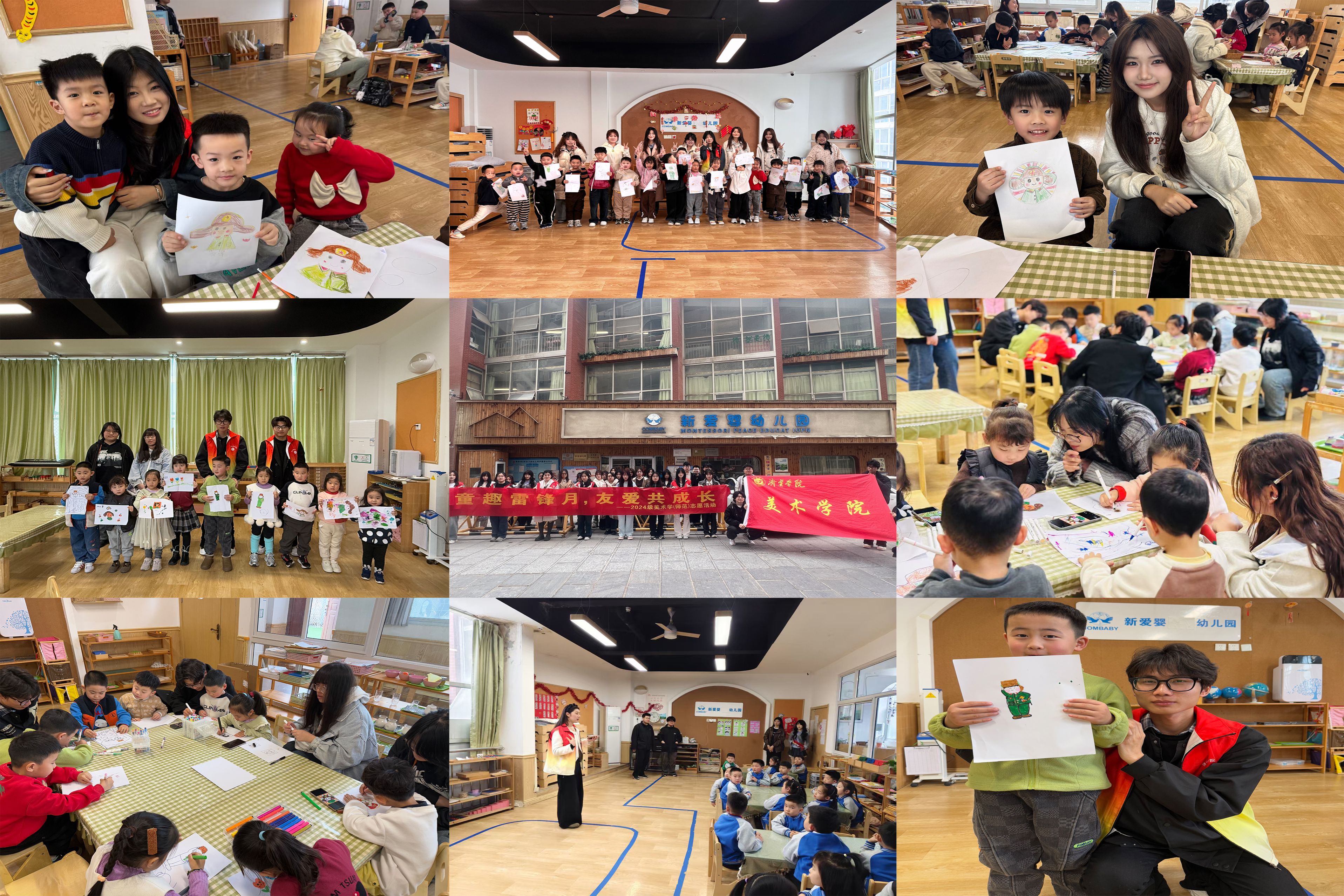 为将“雷锋精神”融入童真世界,美院学子走进曲阜市新爱婴幼儿园,开展了“童心画雷锋,美德润新芽”美育活动。
