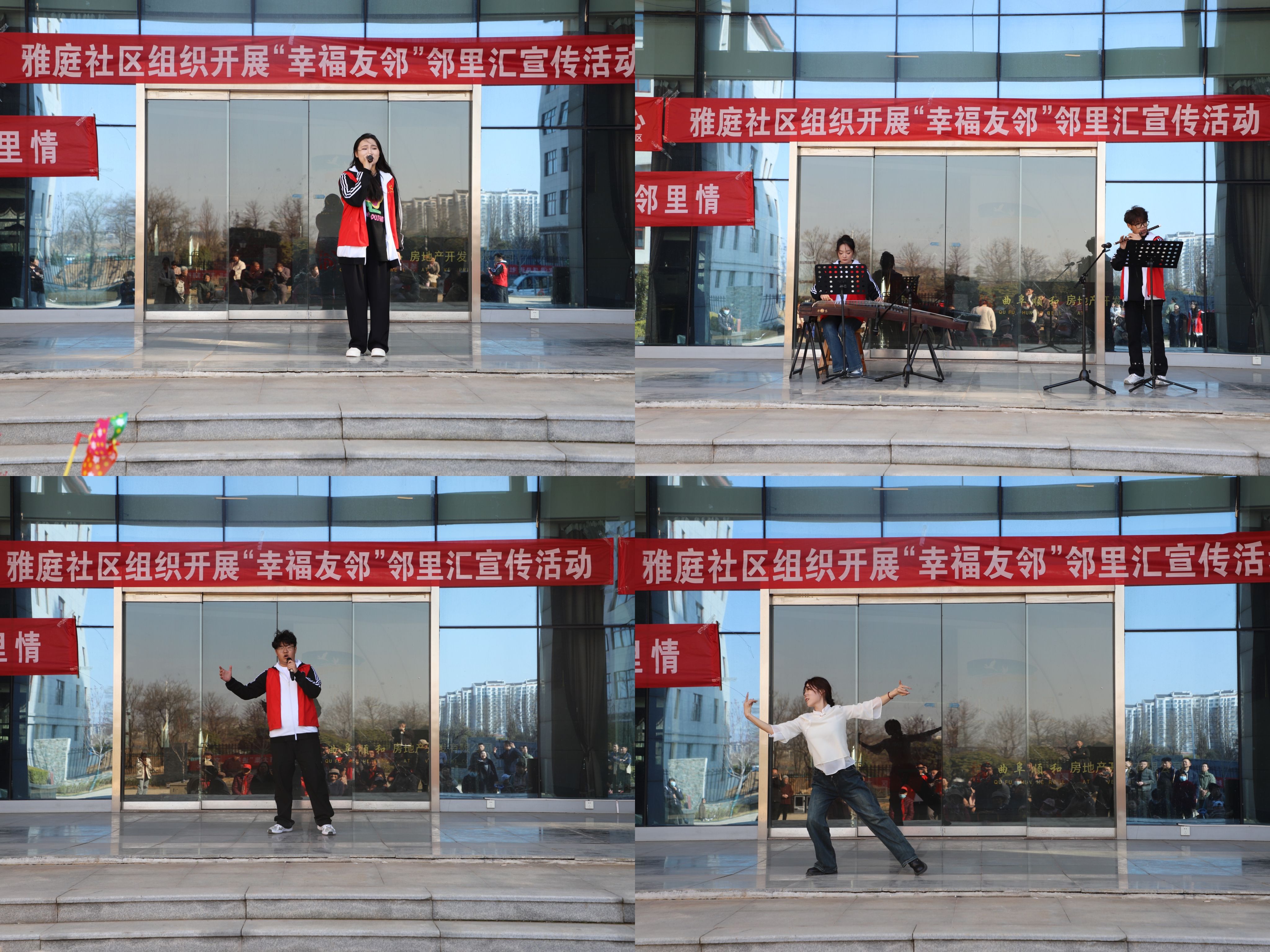 演出以恢弘的合唱《不忘初心》启幕,青年学子们用清澈的歌声唱响初心使命,瞬间点燃全场热情;一曲《再看一眼亲人》以深情的旋律叩击心灵,诠释了家国情怀的厚重;《你看党旗飘扬的方向》则以磅礴的气势,展现出新时代青年对理想信念的坚毅追求;舞蹈《世界赠予我的》以灵动的身姿勾勒出生命的美好姿态,传递出对时代的感恩与热爱;器乐合奏《我的祖国》每一个音符都表达着对祖国母亲深深的热爱;《紫荆花盛开》以悠扬的旋律述说着紫荆花在五星红旗下绽放的炽热情怀;《松花江上》的悲壮、《如愿》的希望、《无名的人》的致敬,以艺术化叙事串联起党史记忆与时代精神,让居民在欣赏音乐的同时,感受红色文化的温度与力量;压轴节目《我和我的祖国》、《相亲相爱》将全场氛围推向高潮,激昂的歌声感染了在场的每一个人。此次演出内容丰富,形式多样,得到了社区居民的一致好评。演出过程中,观众们热情高涨,掌声不断。