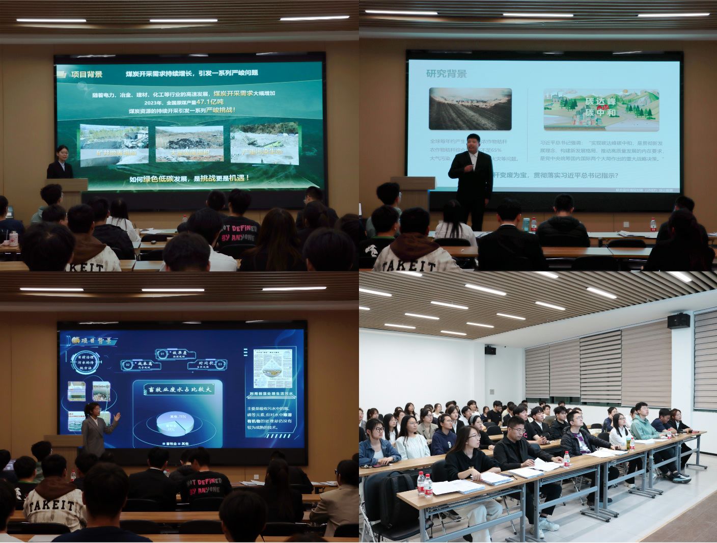 本次大赛自启动以来,共收到来自资源环境与安全工程学院、化学化工与材料学院等学院学生的优秀作品24项,经前期筛选,共12件作品参加现场答辩。各参赛团队从选题背景、研究内容、结论及未来展望等方面汇报团队研究成果,评审专家就作品的大赛主题契合度、创新创意水平、论证过程、结论可靠性等方面进行细致点评,并针对存在的问题提出中肯的意见及建议。