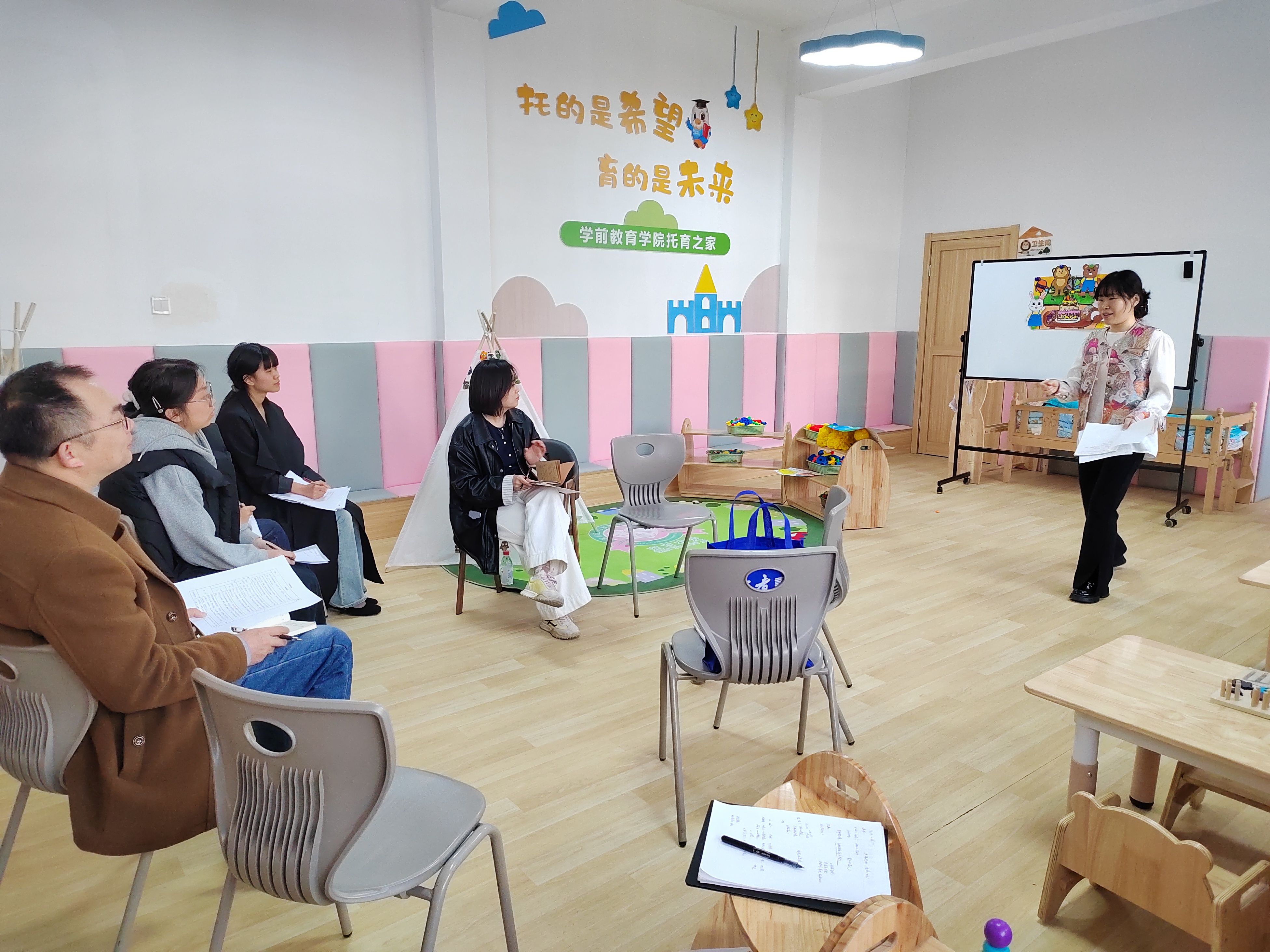 3月25日,学院特邀兖州区韦园幼儿园园长黄鑫、东郡幼儿园骨干教师徐洁到学院托育之家交流指导,参赛学生围绕自选活动主题进行模拟上课,并展示了声乐、器乐、舞蹈等专业技能。专家们充分肯定了学生的专业素养和教学潜力,同时从教学结构设计、内容组织、语言规范性、师生互动技巧以及个人才艺展示等方面提出了针对性建议。