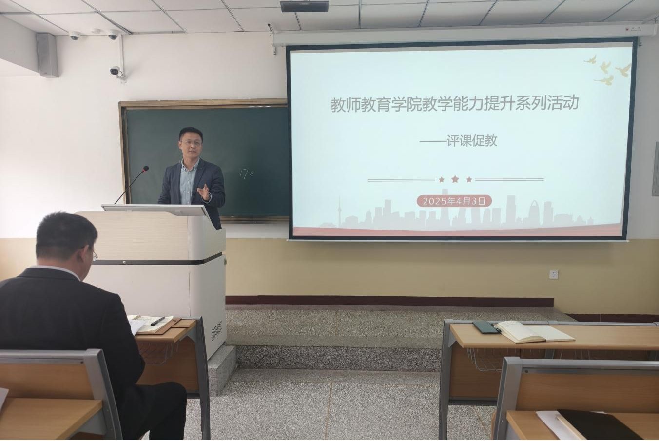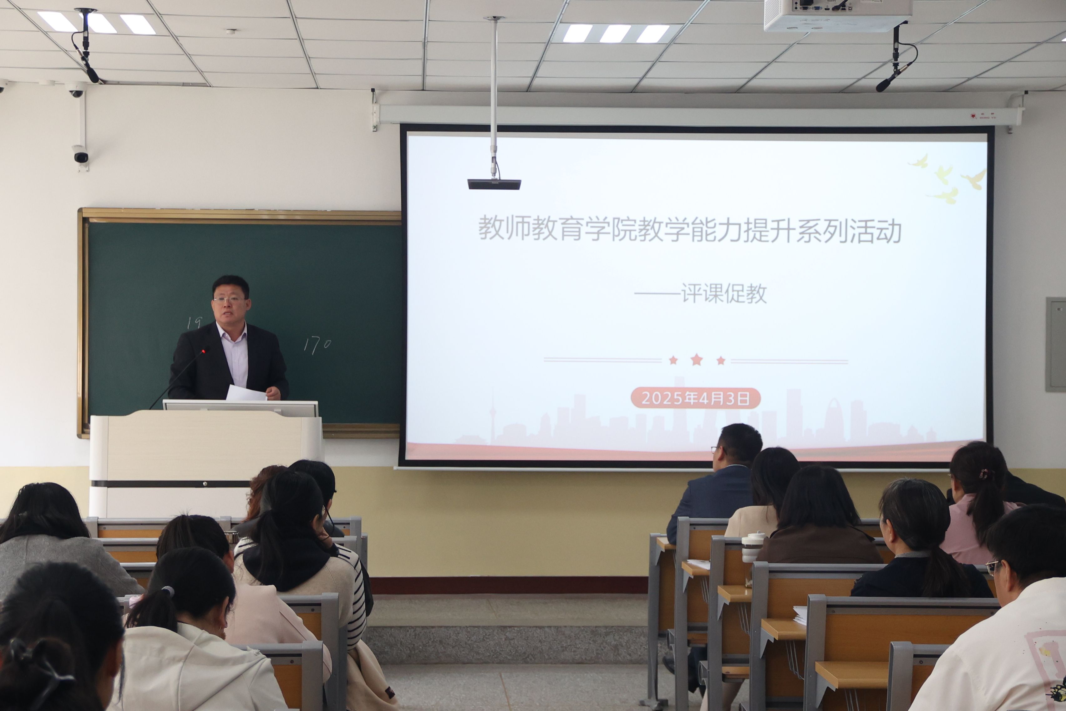 活动伊始,教师教育学院院长曹光海以“以评促改,以研促教”为题发言,他强调课堂教学在人才培养体系中的核心地位,优质的课堂教学是保证教育质量的关键环节。曹光海详细阐述了听课评课活动的重要意义:一方面,这是对教师教学效果的客观检验,能够帮助教师发现教学中的不足;另一方面,更是推动课堂教学改革、促进教师专业成长的重要举措。他特别提到,在当前教育改革不断深化的背景下,教师需要通过持续地反思与改进来提升教学能力。同时,他对参加活动的教师们表达了鼓励与期望,希望大家能够珍惜这次交流机会,以开放的心态相互学习,在评课过程中坦诚交流、取长补短、互鉴共进、协同提升。
