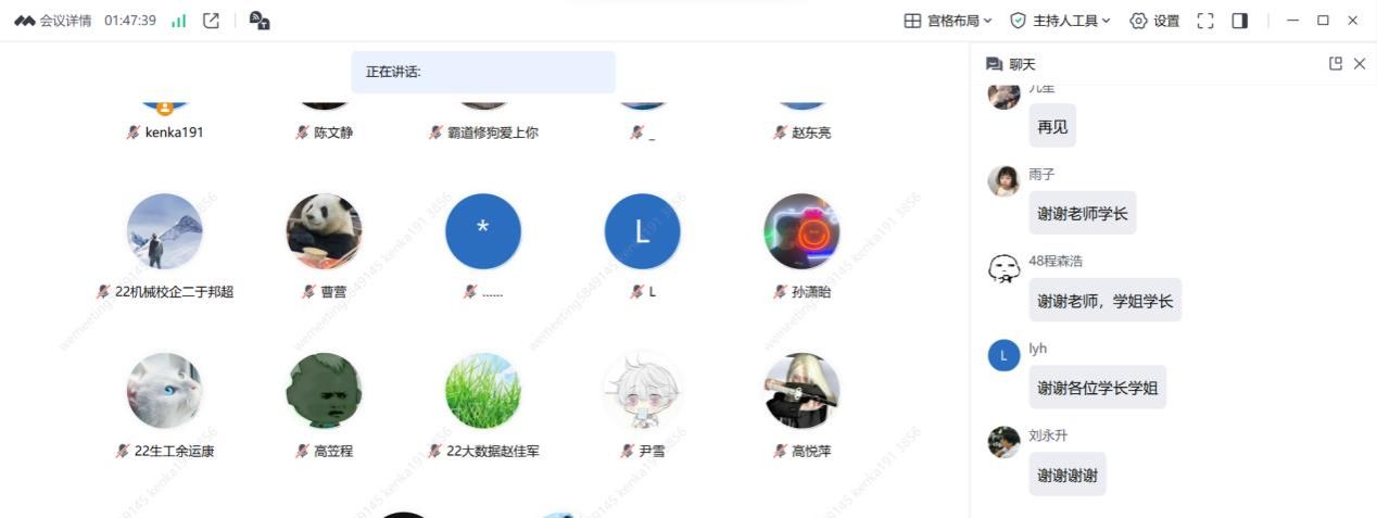 除了考研经验,主讲人们还就大学日语学习、四六级和日语等级考试备考等问题与参会同学展开互动。同学们积极提问,线上交流气氛热烈。