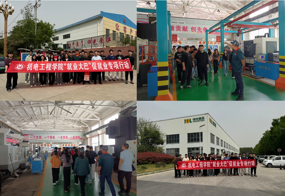 为对接企业人才需求,确保毕业生高质量充分就业,4月17日,机电工程学院联合生命科学与工程学院开展“就业大巴直通车”活动。两学院共组织40余名学生一同乘坐大巴,前往山东瑞祥模具有限公司和伟龙食品有限公司参观交流。