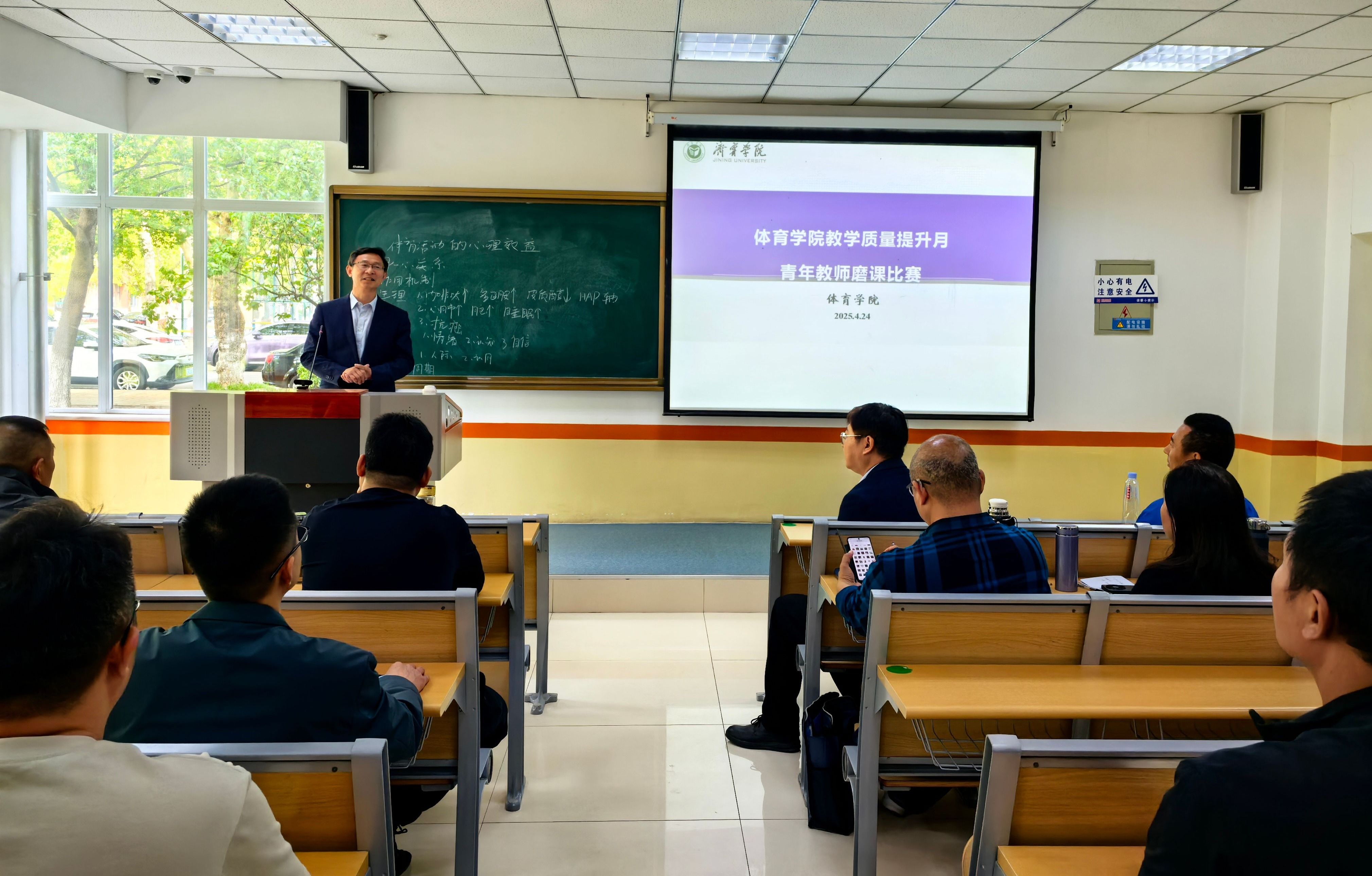 4月25日上午,体育学院在3号楼B108举办青年教师磨课比赛,该活动是学院教学质量提升月系列活动之一。活动由体育学术副院长杨皖霖主持,特邀体育学院名誉院长戴俊教授为点评专家,学院全体青年教师、教研室主任参加。