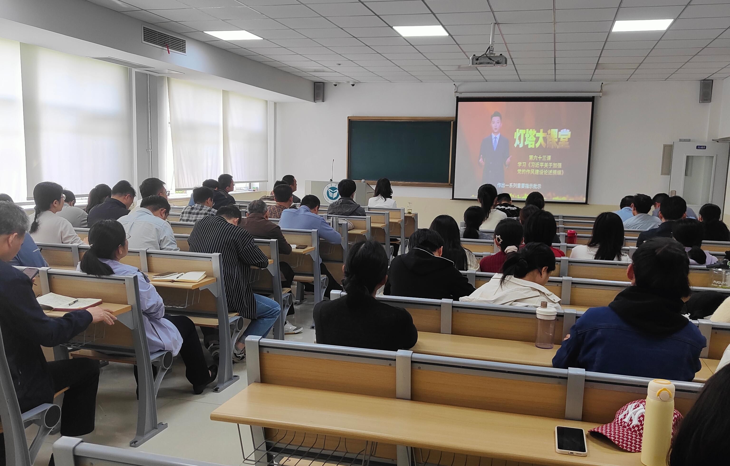 为进一步推进深入贯彻中央八项规定精神学习教育,4月24日,化学化工与材料学院党委组织全体教职工共同收看“灯塔大课堂”第六十三课,集体学习《习近平关于加强党的作风建设论述摘编》。活动由学院党委书记马新蕾主持。