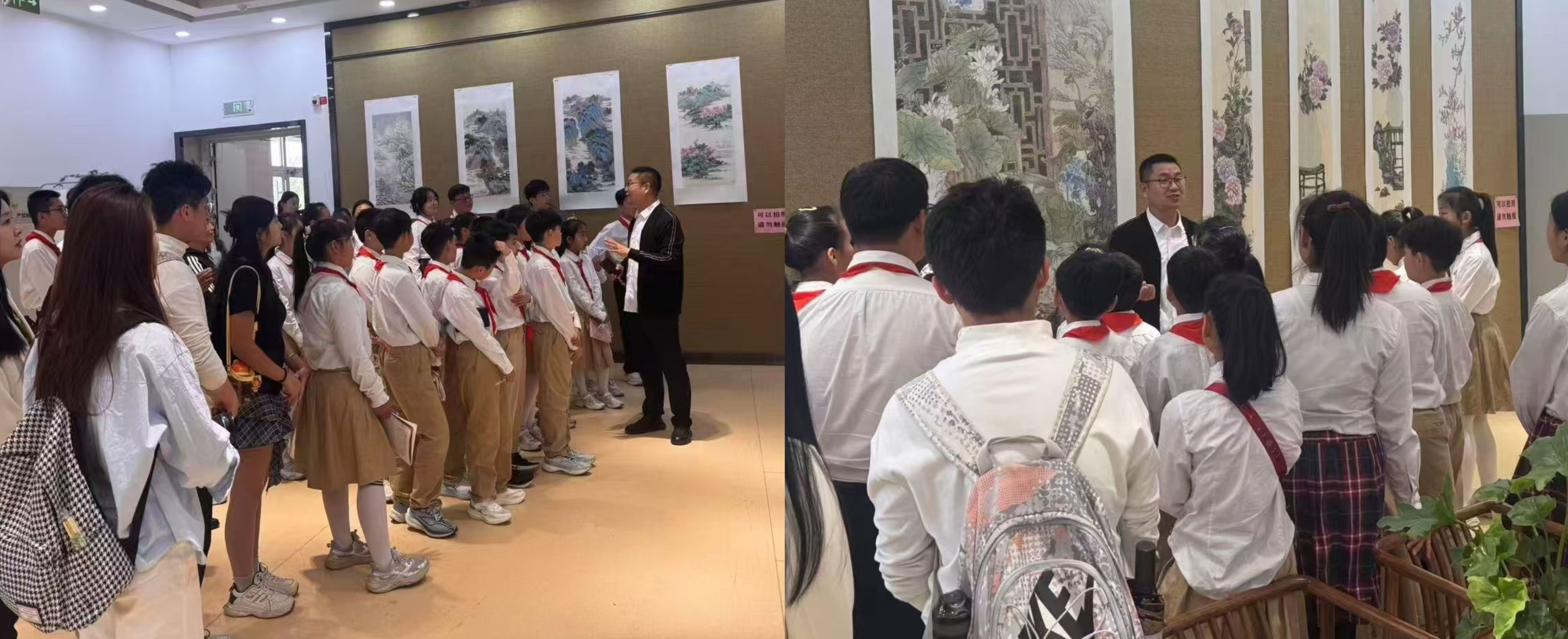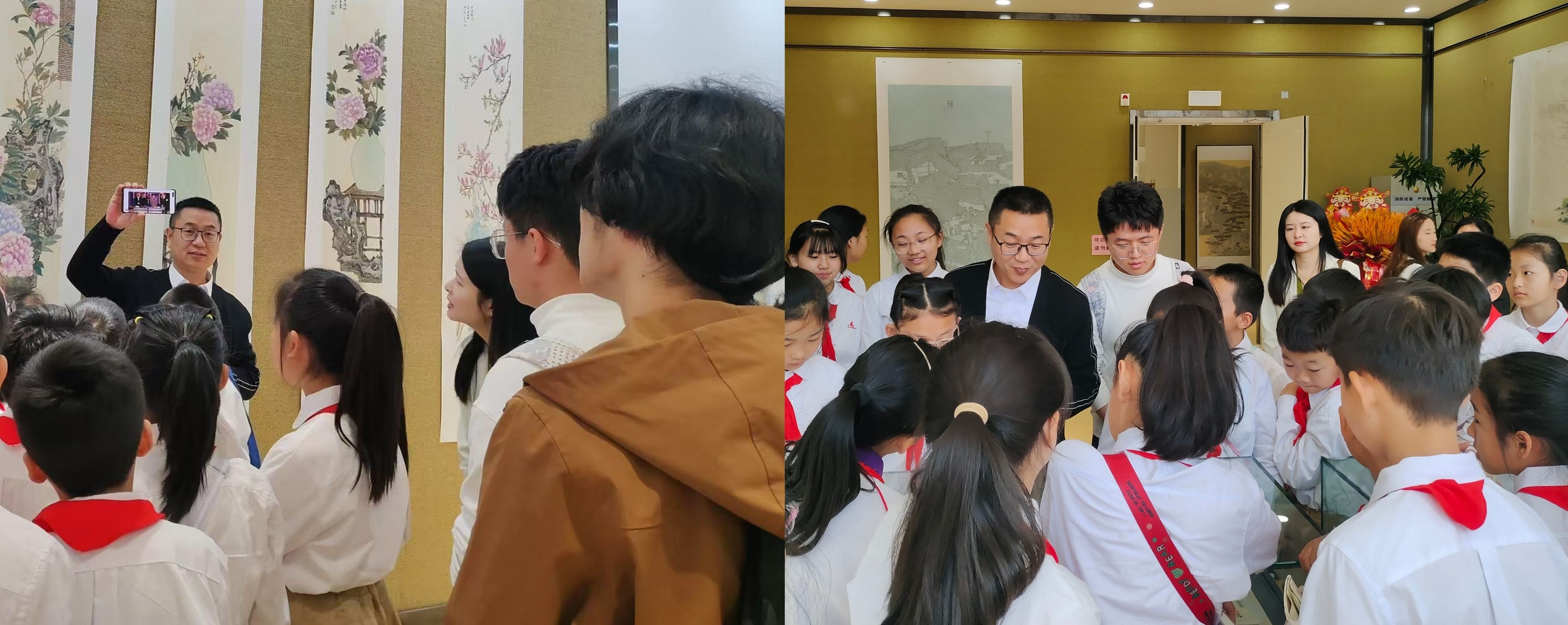 马克思主义学院师生代表与蓼河外国语学校的中小学生们一同前往济宁艺术剧院,参观吴贞光老师的画展。吴老师为大家讲解创作故事与艺术理念。在吴老师引导下,师生们穿梭于一幅幅精美画作之间,感受着艺术的魅力与力量,快乐、愉悦、自觉地内化、吸收绘画内容。