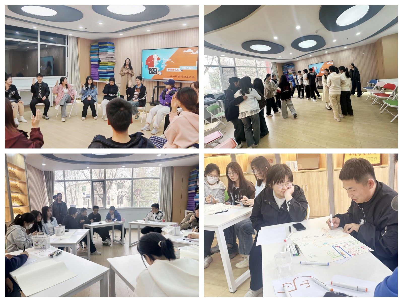 本次活动由三个环节构成。破冰环节借助互动游戏“桃花朵朵开”营造活跃氛围,助力同学们快速熟络,在轻松环境中拉近距离。“环游兴趣岛”环节以绘画艺术为载体,引导学生通过创作探索职业兴趣倾向,深刻理解兴趣在职业选择中的关键作用。“我的职业兴趣”环节则系统解读霍兰德职业兴趣理论,帮助学生科学识别自身职业兴趣类型,深入剖析兴趣对应的职业特征,从而精准定位个人职业兴趣方向。