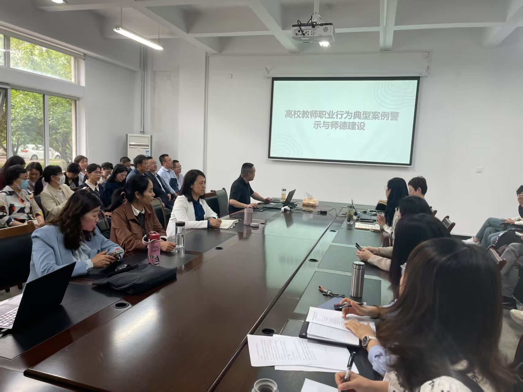会议还组织观看了《师德警示教育- 师德失范典型案例(高校篇)》。视频中的案例真实、生动,从不同角度展现了师德失范行为对学生、学校和社会造成的不良影响。观看过程中,教职工们神情专注,深受触动。