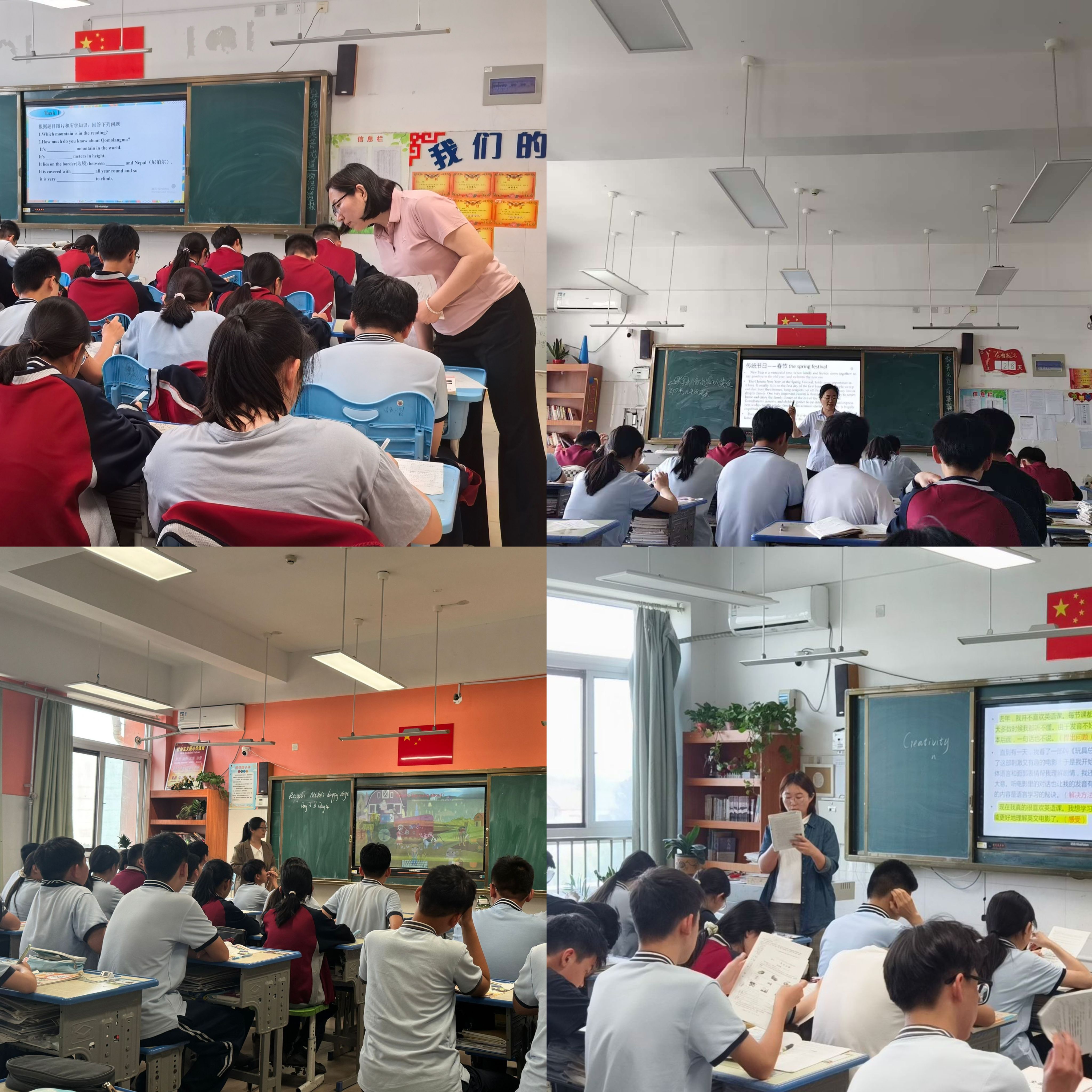 在小学课堂上,学生们观察到教师们采用生动有趣的教学方式,利用丰富的教具、活泼的互动游戏,充分激发孩子们学习英语的兴趣。而初中课堂则更注重知识的系统性传授,教师引导学生积极思考,培养他们的自主学习能力和语言运用能力。各小组学生认真记录课堂教学的每一个环节,从教师的教学设计、教学方法的运用,到师生互动的模式、课堂氛围的营造,不放过任何一个细节。