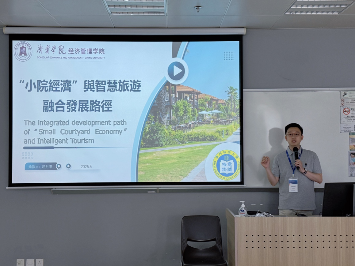 赵月阳在会上以《“小院经济”助推新兴文旅业态拓展路径开发——以山东省济宁市为例》为题目,作了分享发言,以济宁市及其下辖县市区为研究对象,探讨智慧旅游如何赋能农家小院经济与文化旅游,分析其开发与运营模式,并通过案例研究验证智慧旅游在乡村旅游中的实践价值。本研究不仅为济宁市及下辖县市区的乡村旅游提供实践指导,也为其他地区的乡村旅游数字化转型提供借鉴,推动农村经济的可持续发展。