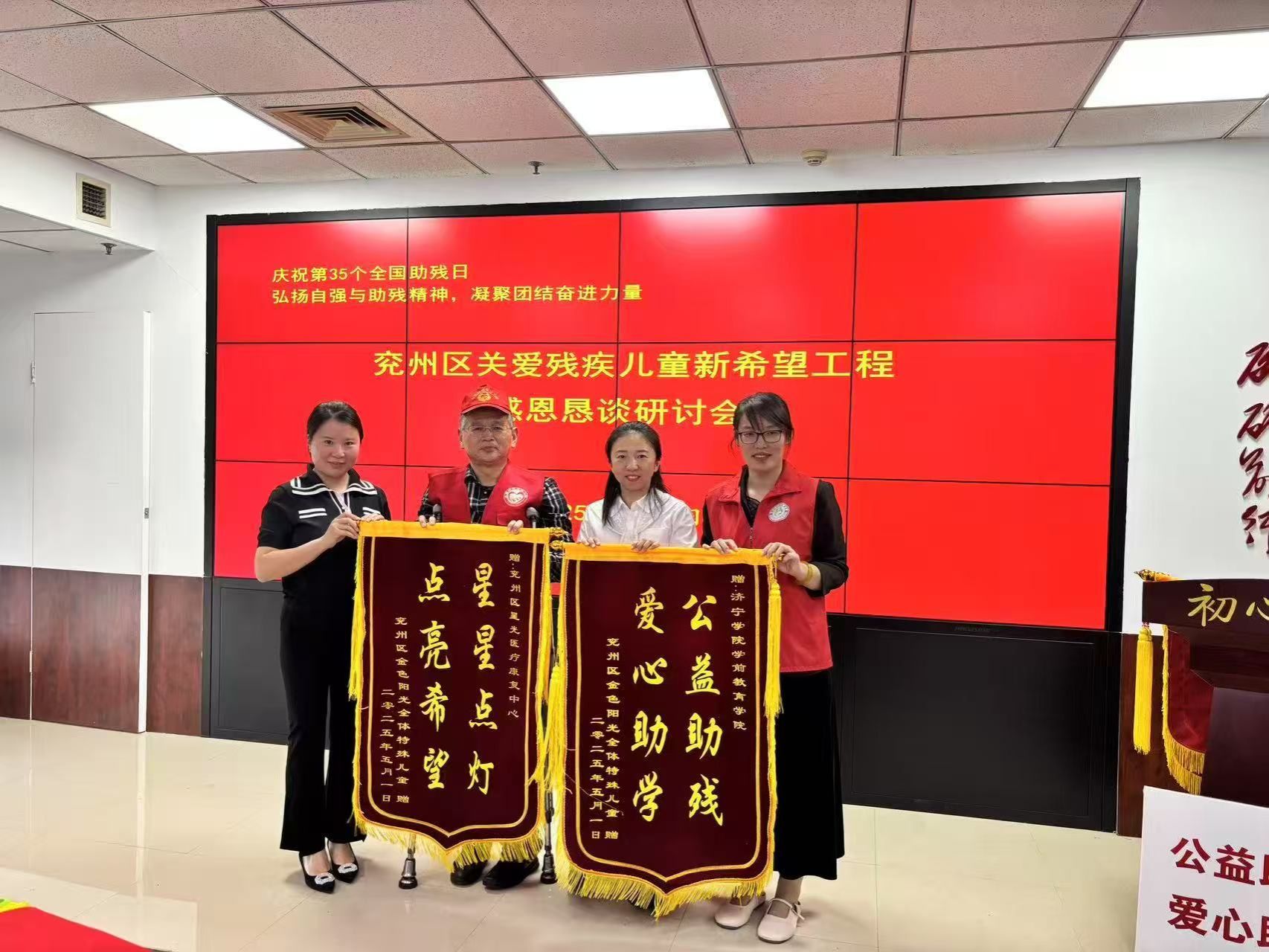 在研讨会上,兖州区残联为表达对学院志愿者协会无私奉献的诚挚感谢,授予了“公益助残爱心助学”的锦旗。这不仅是对学院志愿者集体的高度肯定,更是对未来助残之路的深情期许,承载着沉甸甸的责任与使命。学前教育学院志愿者协会将以此次活动为新的起点,继续秉承奉献精神,不断提升服务质量和水平。