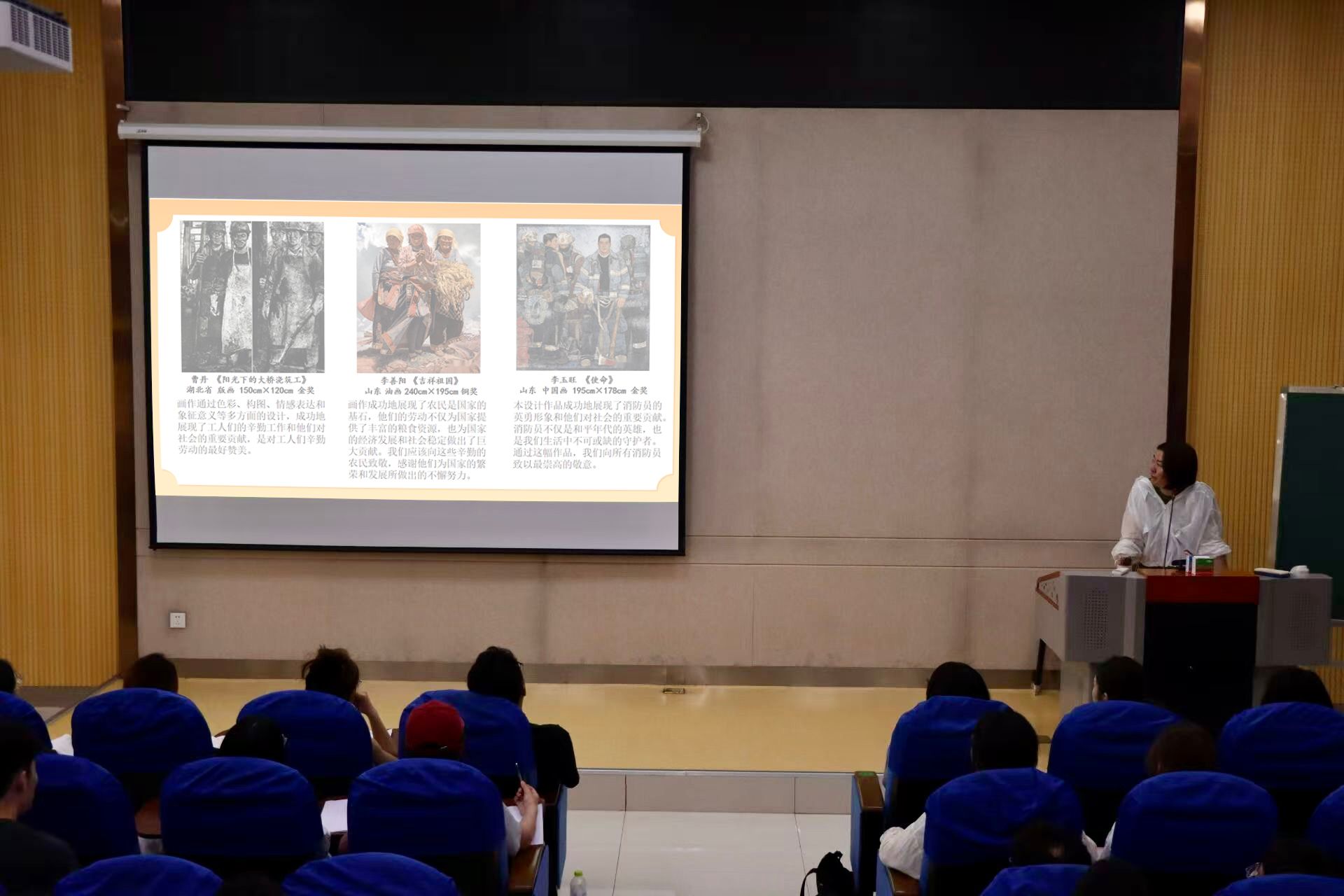 党课中,杨晓青深入阐释了新时代文化使命的深刻内涵,强调党的二十大及党的二十届三中全会对文化建设的战略部署,指出艺术工作者要以“两个结合”为指引,主动担当时代责任。她通过生动案例解析艺术与社会的互动关系:从《哪吒之魔童降世》以传统神话创新表达赢得青年共鸣,到《只此青绿》以舞蹈活化《千里江山图》展现文化传承新路径;从全国美展金奖作品《援建北川》用艺术定格党群同心重建家国的壮举,到冬奥会“雪如意”跳台勾勒传统礼器的现代弧线。杨晓青以多元艺术实践印证“艺术为民”的创作导向,号召美院学子立足专业、扎根人民,在乡村振兴、科技创新等领域用艺术赋能社会发展。