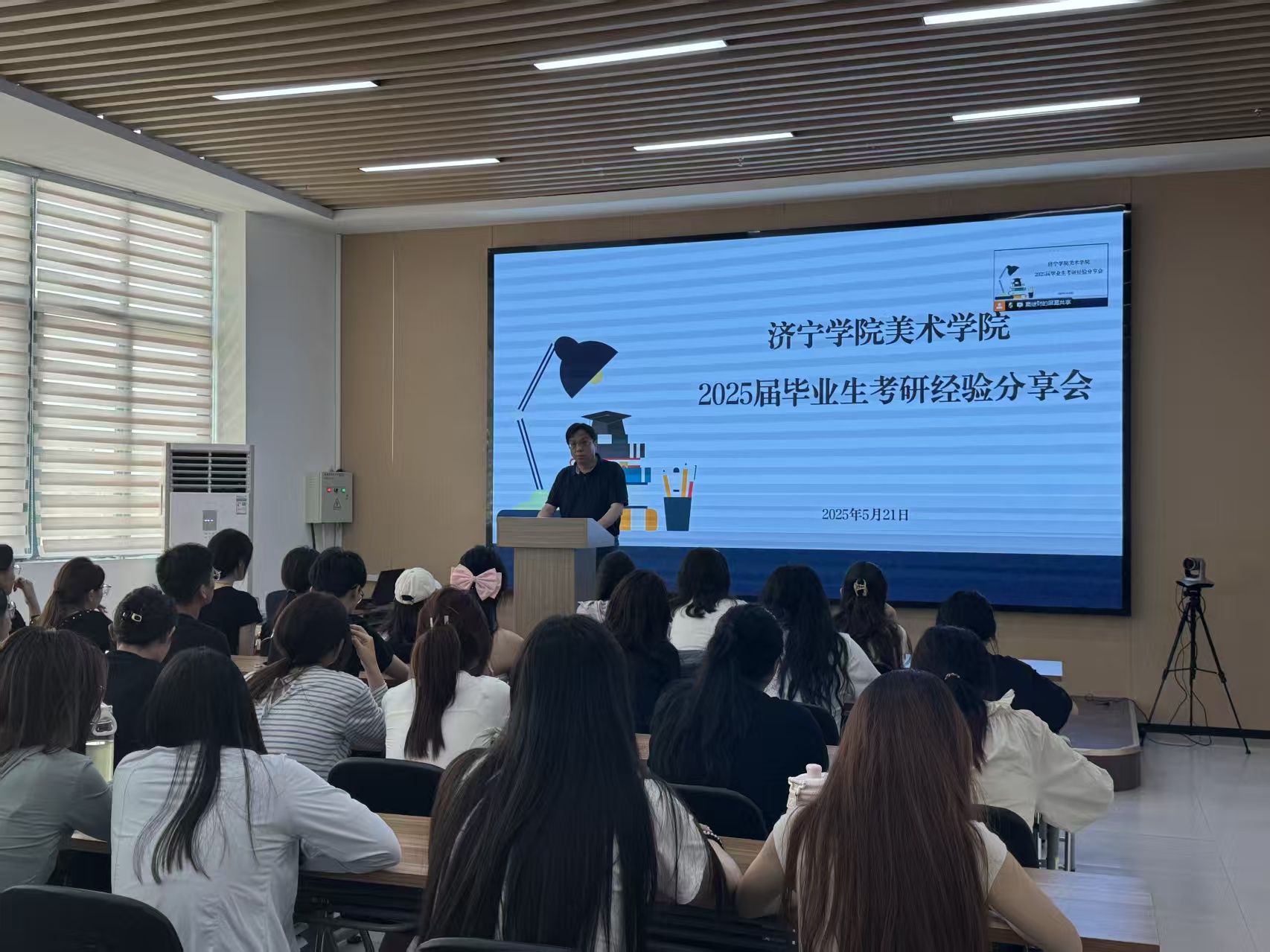 为加强学风建设,助力学生科学规划学业发展,更好地帮助低年级学生备战考研,5月21日,美术学院在亚星在线登录官网大学生赋能中心多功能厅、高新校区B1楼307教室举办了考研经验分享会,活动邀请了2025届考研“上岸”的三位优秀毕业生——孙晴、马楚宜、刘宇晗分享备考策略与心路历程。党委副书记胡国梁、辅导员王姝彤、朱润昂及70余名学生参加本次活动。