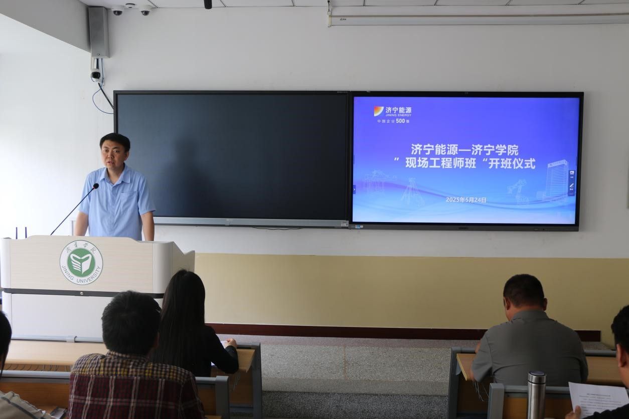 5月24日,我校与济宁能源集团“现场工程师班”开班仪式在2号楼A113教室举行。济宁能源集团致远教育教务主任高维东,济宁能源集团金桥煤矿矿长助理兼人事科科长滦俊峰,我校教务处处长周珂,机电工程学院党委书记王振平、院长张营、副院长张长茂以及校企双方班主任和全体学员参加活动。