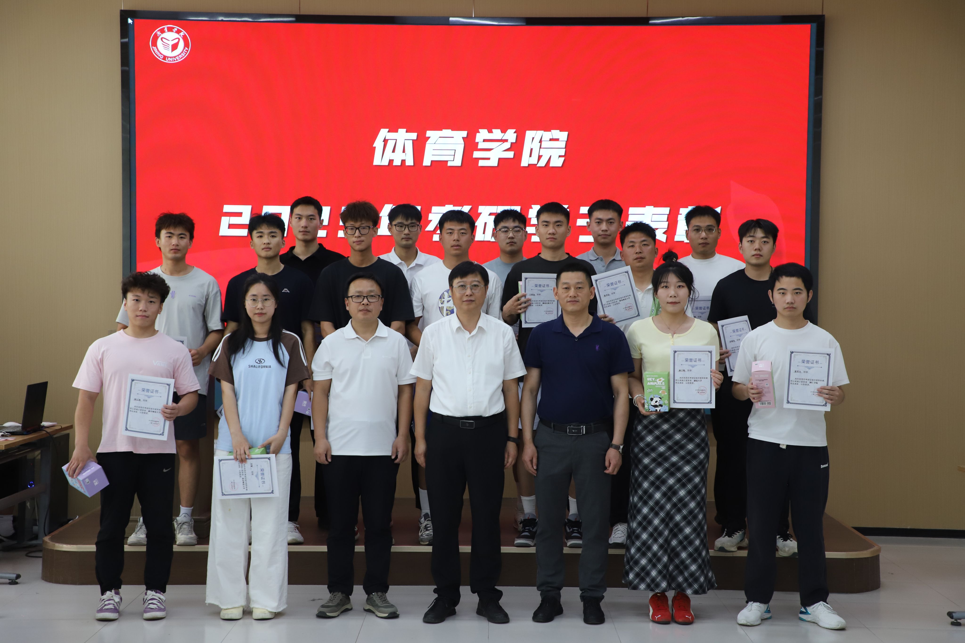 为深入贯彻落实学院学风建设工作,充分调动广大学生升学及就业的积极性,5月29日下午,体育学院在大学生就业赋能中心举行2025年考研考公表彰大会暨经验交流分享活动。学院党委书记刘亚斌、党委副书记辛允东、副院长宋正义出席颁奖,辅导员王天聪、各年级学生代表参与本次会议。