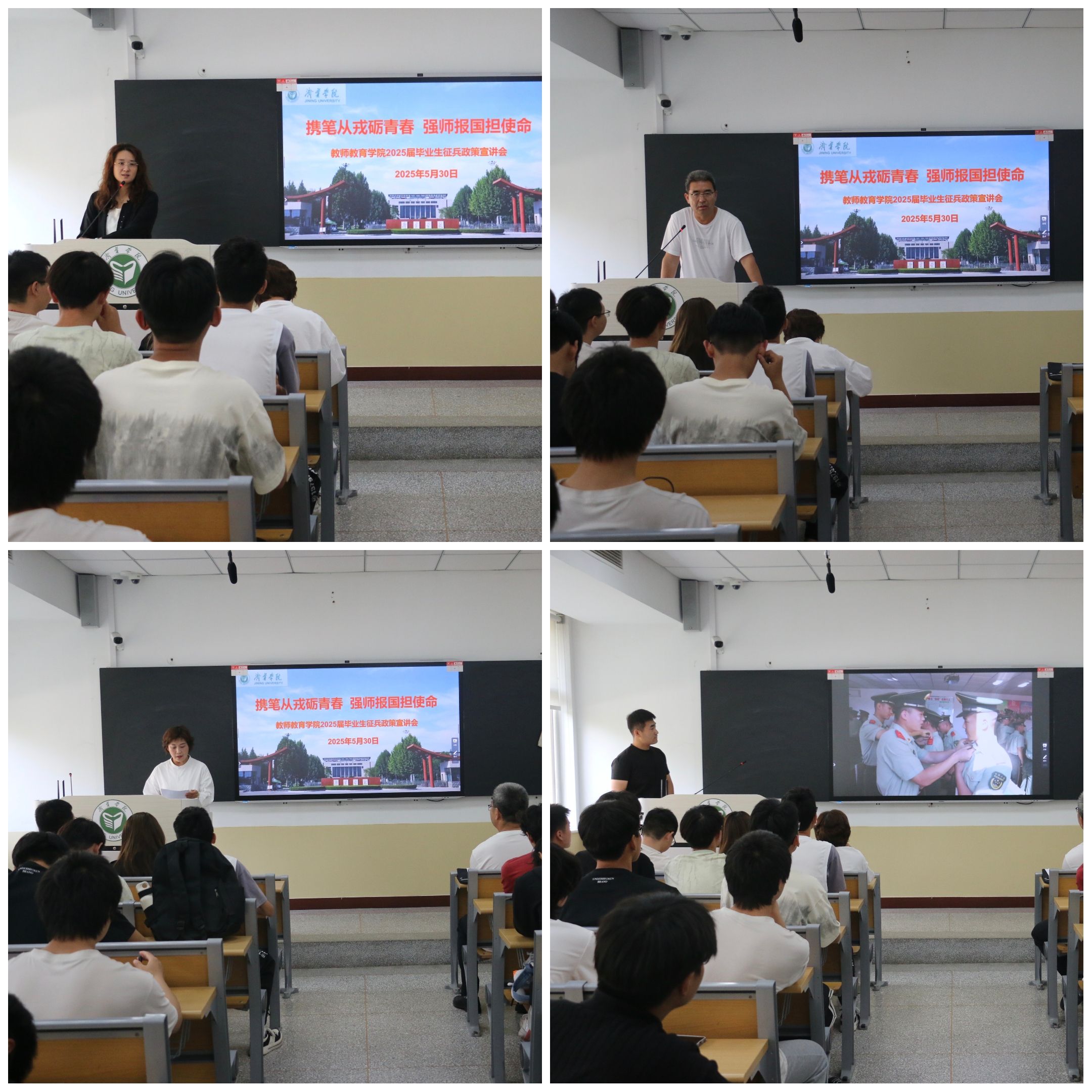 为鼓励学生响应国家号召参军入伍,5月30日上午,教师教育学院于2号楼A114举行征兵政策宣讲会。学院党委副书记杜鹃、学生工作处(武装部)国防教育科科长胡敏、全体辅导员及2025届、2026届毕业生代表参加。