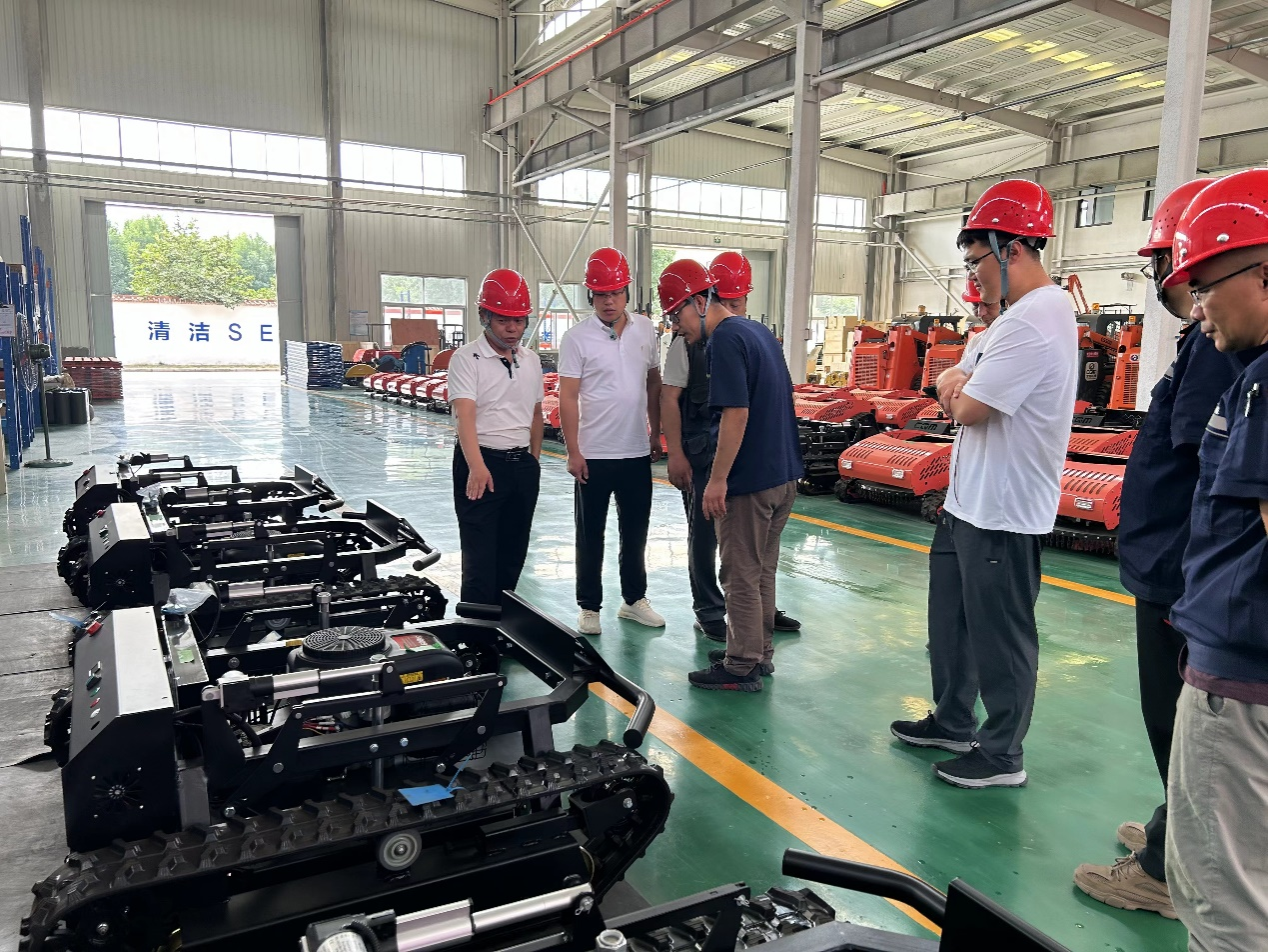 博士团队深入企业生产一线,实地考察了智能化装配车间、激光精密加工中心、产品研发测试平台及二期建设厂房。参观过程中,赵磊详细介绍了公司在园林机械领域的技术优势、核心产品布局,以及面向未来的智能化、绿色化发展战略。博士团队围绕关键工艺优化、新材料应用及智能控制系统升级等前沿技术问题,与企业工程师进行了现场深入交流。