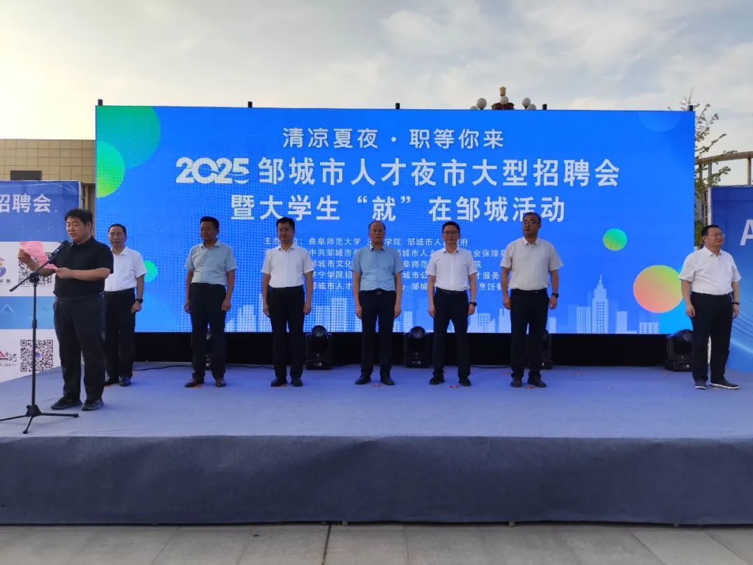 6月16日晚,“清凉夏夜·职等你来”2025邹城市人才夜市招聘会暨大学生“就”在邹城活动在邹城市孟子大剧院广场隆重举办。邹城市委常委、组织部部长张新安,邹城市政府副市长布方锋亲临现场指导,人文与传播学院党委书记朱桂林、副书记岳现超,学生工作处副处长鹿凯参加活动。