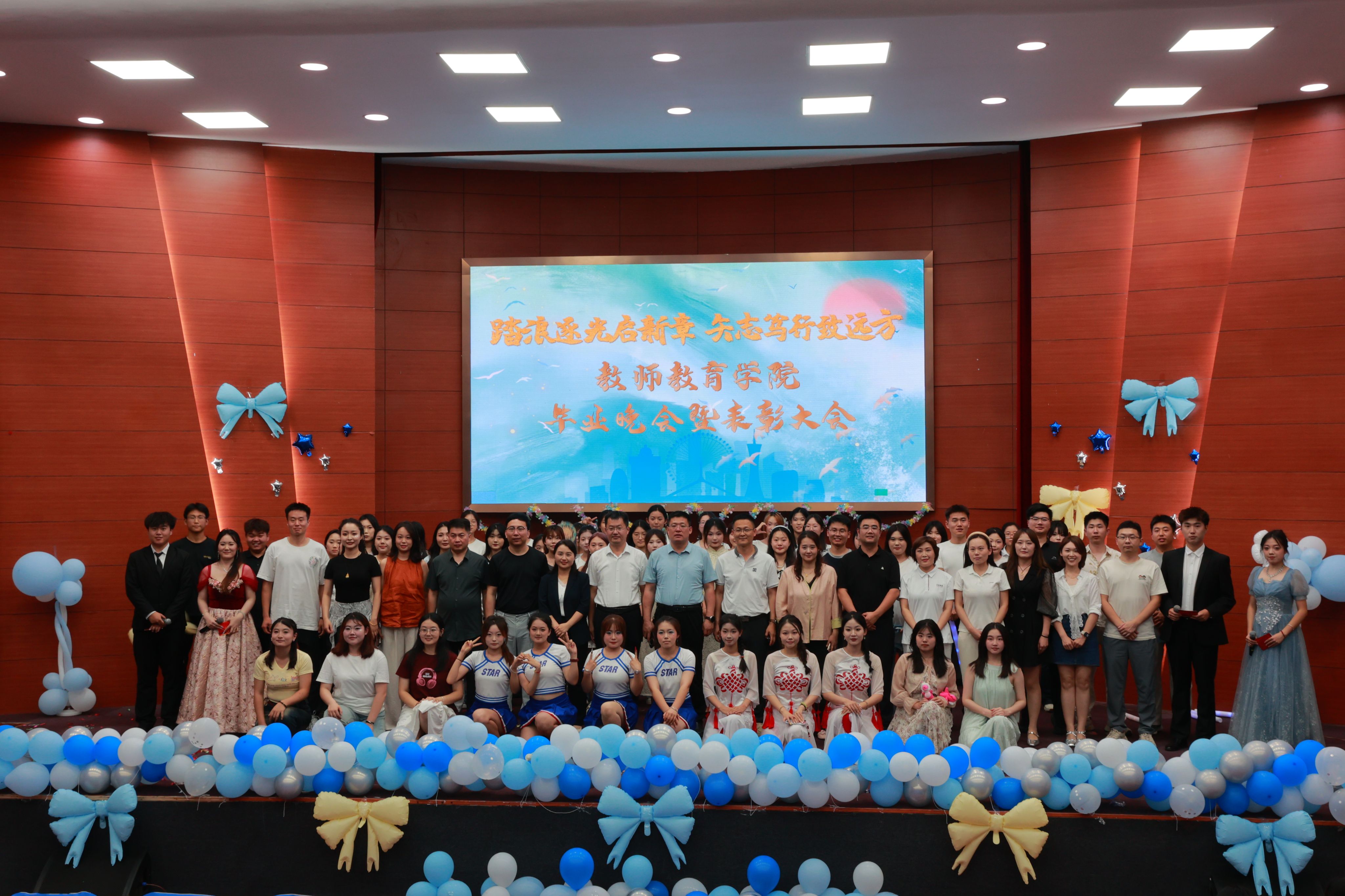 骊歌轻唱,青春飞扬。6月17日晚,教师教育学院“踏浪逐光启新章 矢志笃行致远方”2025年毕业晚会暨表彰大会在理科楼报告厅举行。学校党委副书记丰家雷,党委委员、宣传部部长刘克非、学生工作处副处长鹿凯、部分单位教师、教师教育学院领导班子及师生代表400余人欢聚一堂,共叙情长。