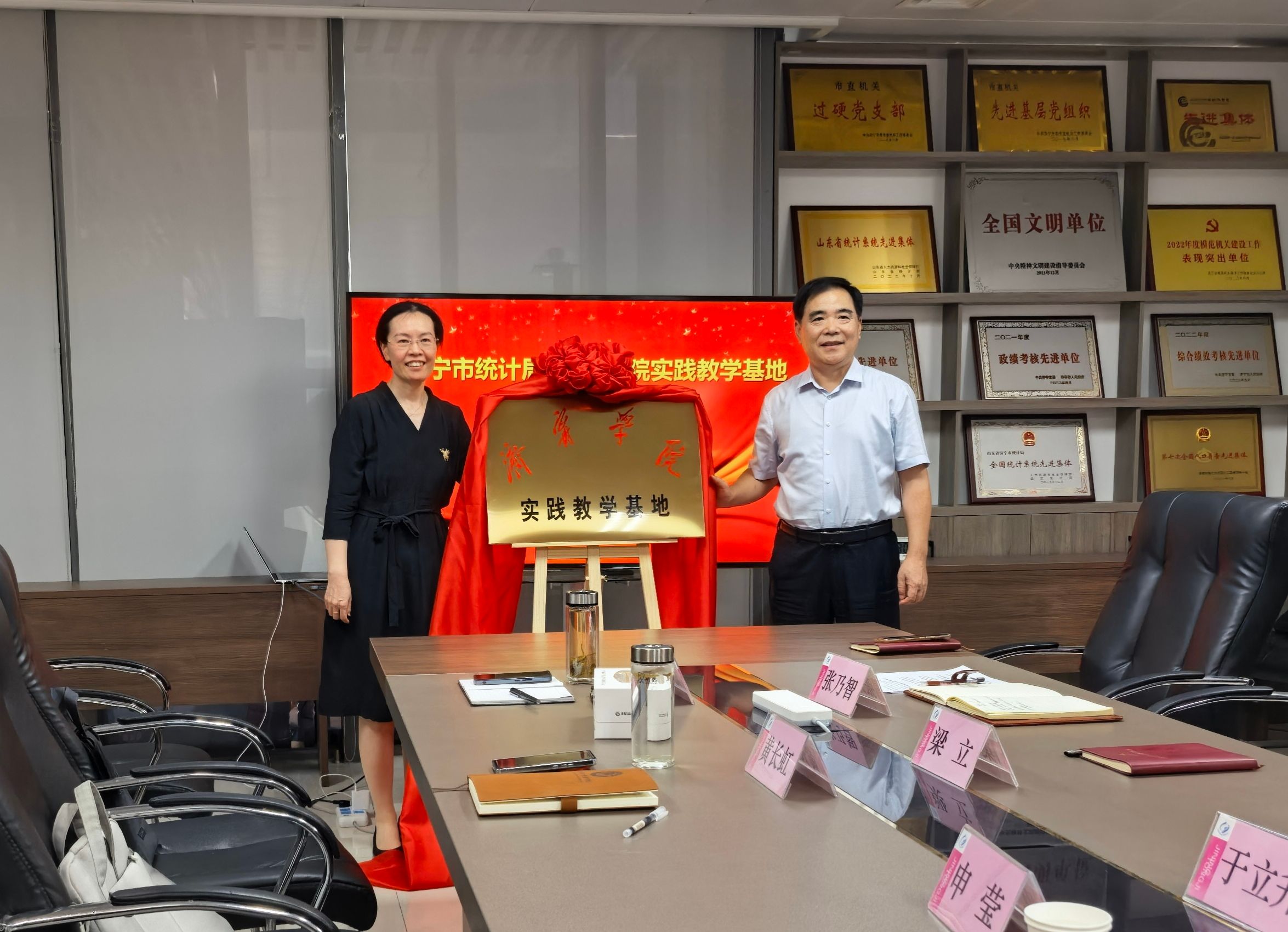 在济宁市统计局会议室,学院与市统计局举行了实践教学基地签约和授牌仪式。张乃智在致辞中强调,统计局拥有文化、旅游、卫生等多领域优质数据资源,加之济宁市数字经济核心产业在山东省位居前列,与学院合作基础深厚、潜力巨大。他希望通过共建‘人才 + 资源’模式,提供实习、挂职机会,开展课题研究,既提升社会育才水平,又助力区域经济发展。 黄长虹表示,此次合作将让学生深入政府统计一线实践,深化产教融合;青年教师参与课题攻关,也能更精准把握行业需求,对学院发展意义重大。