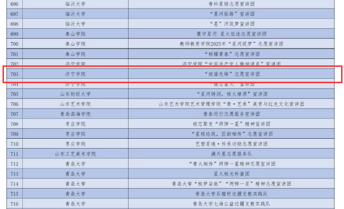 6月19日,由团中央青年志愿者行动指导中心与中国核工业集团有限公司联合开展的2025年全国大学生“两弹一星”精神志愿宣讲活动公布了入选团队名单,资源环境与安全工程学院“核盾先锋”志愿宣讲团成功入选。