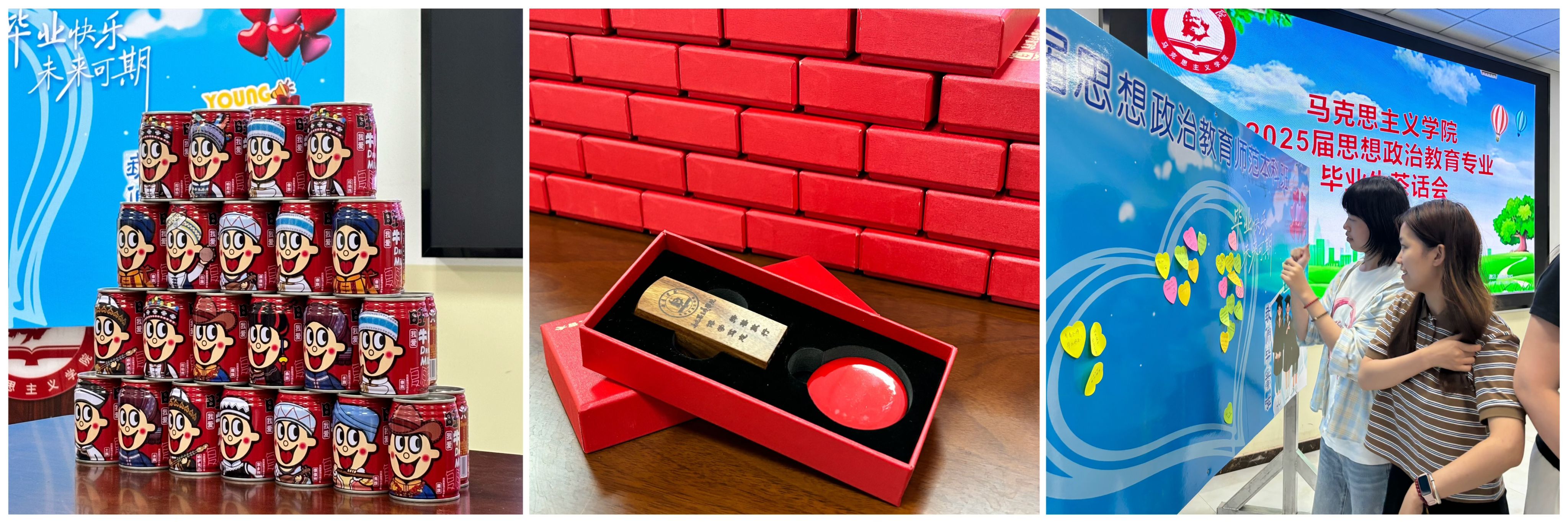 茶话会上,老师们为毕业生逐个发放了带有院徽、校训的个人签章礼盒,这份精心准备的礼物,既是学院对大家的留念,也寄托着对毕业生“博学笃志,择善敦行”的殷切期望。同学们纷纷拿起便利贴,写下对母校和学院的感恩与祝福,将自己的心意贴在祝福墙上。这些满载着眷恋的文字,成为毕业生们留给学院最珍贵的礼物。