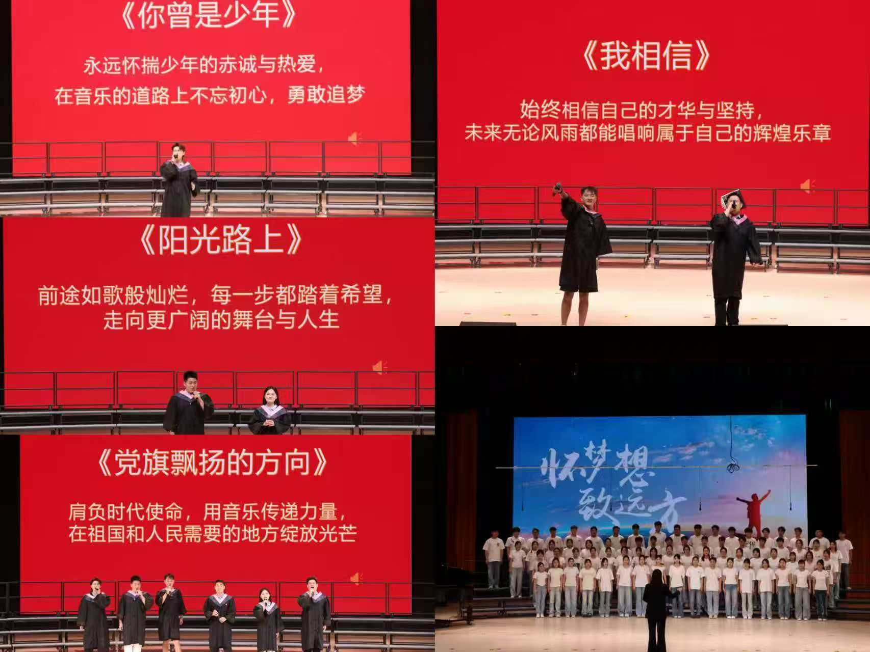 典礼开始前,学院组织编排了精彩的暖场节目,《你曾是少年》《我相信》《阳光路上》《党旗飘扬的方向》《期待的远方》等歌曲为这场承载成长与告别的仪式奏响序章。