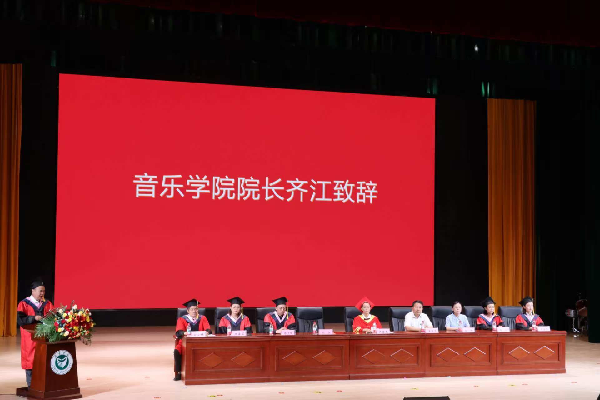 6月23日上午,音乐学院2025届毕业典礼暨学位授予仪式在艺体中心音乐厅隆重举行。校党委委员、副校长尹春光,音乐学院党委书记辛亚杰,院长齐江,党委副书记岳娜,副院长杨昉,学术副院长黄鑫鑫、齐文强,院长助理陈亚亚,全体辅导员,教师代表,家长代表与490名毕业生参加仪式,共同见证毕业的荣耀时刻,分享开启新征程的喜悦。典礼由学院副院长赵小林主持。