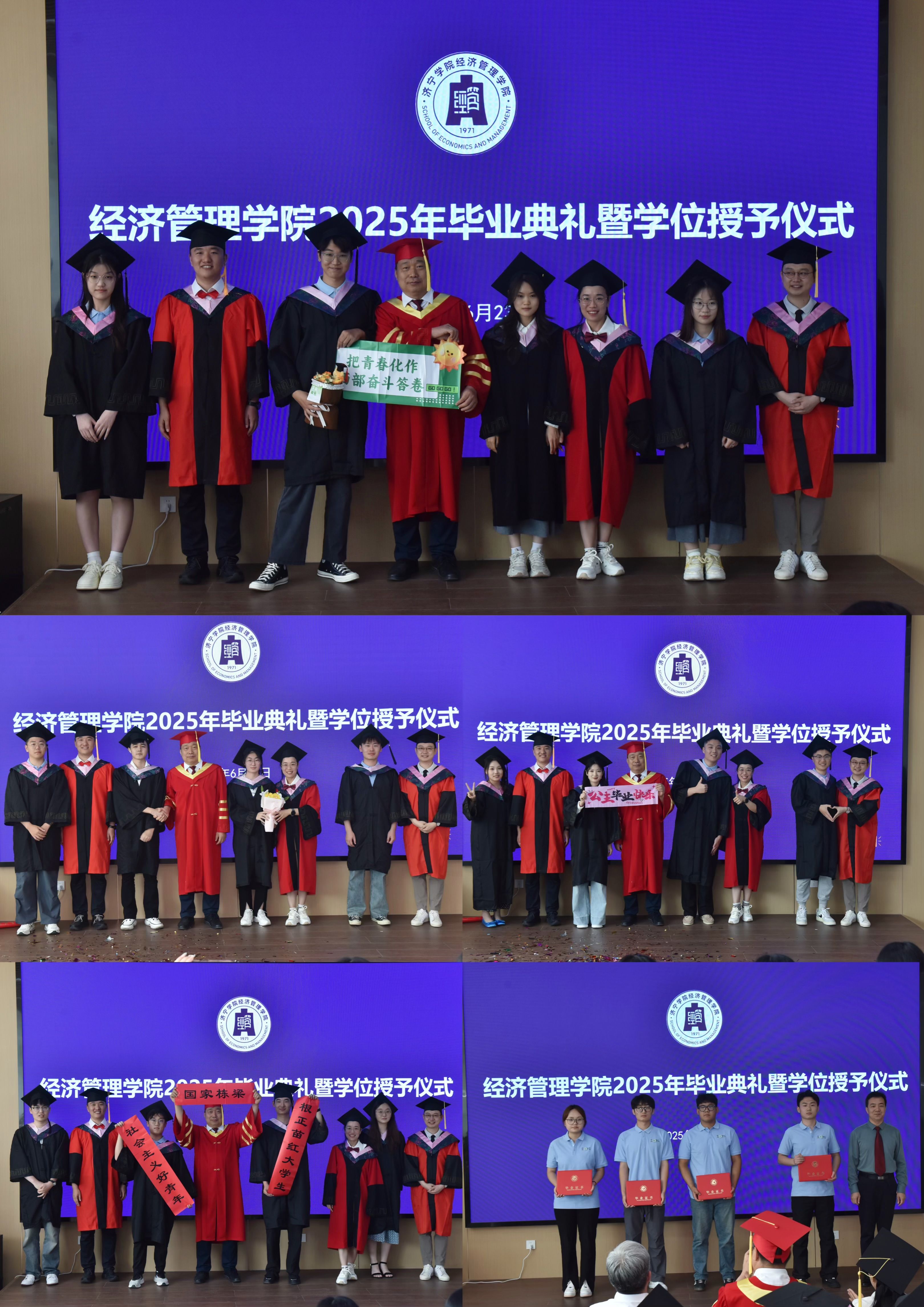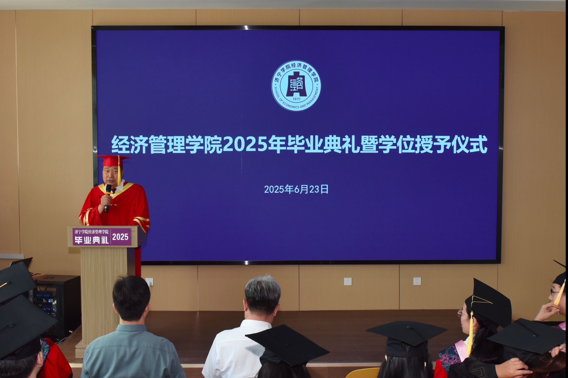 毕业典礼在雄壮的国歌声中拉开帷幕。王清明在致辞中向经济管理学院全体毕业生致以热烈祝贺。他表示,在数字经济浪潮奔涌、全球产业链深度重构的时代背景下,经济管理学院毕业生们不仅掌握了经济学、管理学的理论精髓,更在实践中锤炼出分析复杂问题、洞察市场规律、驾驭不确定性的核心能力。在同学们即将踏上人生新征程之际,他提出四点希望:一要永葆求知之心,做终身学习的践行者,在知识快速迭代的时代持续精进专业素养,以终身学习筑牢职业根基,增强核心竞争力;二要胸怀国之大者,做经世济民的担当者,以“计利当计天下利”的格局将个人理想融入国家发展,在服务宏观战略、推动产业升级中彰显担当;三要恪守诚信之本,做德才兼备的引领者,坚守诚信底线,秉持职业操守,明辨是非曲直,敬畏规则法度,以德业双修引领行业正气;四要拥抱时代变化,做勇于开拓的创新者,善用经管思维赋能决策,于变革中洞见机遇,在困境中开拓新局。