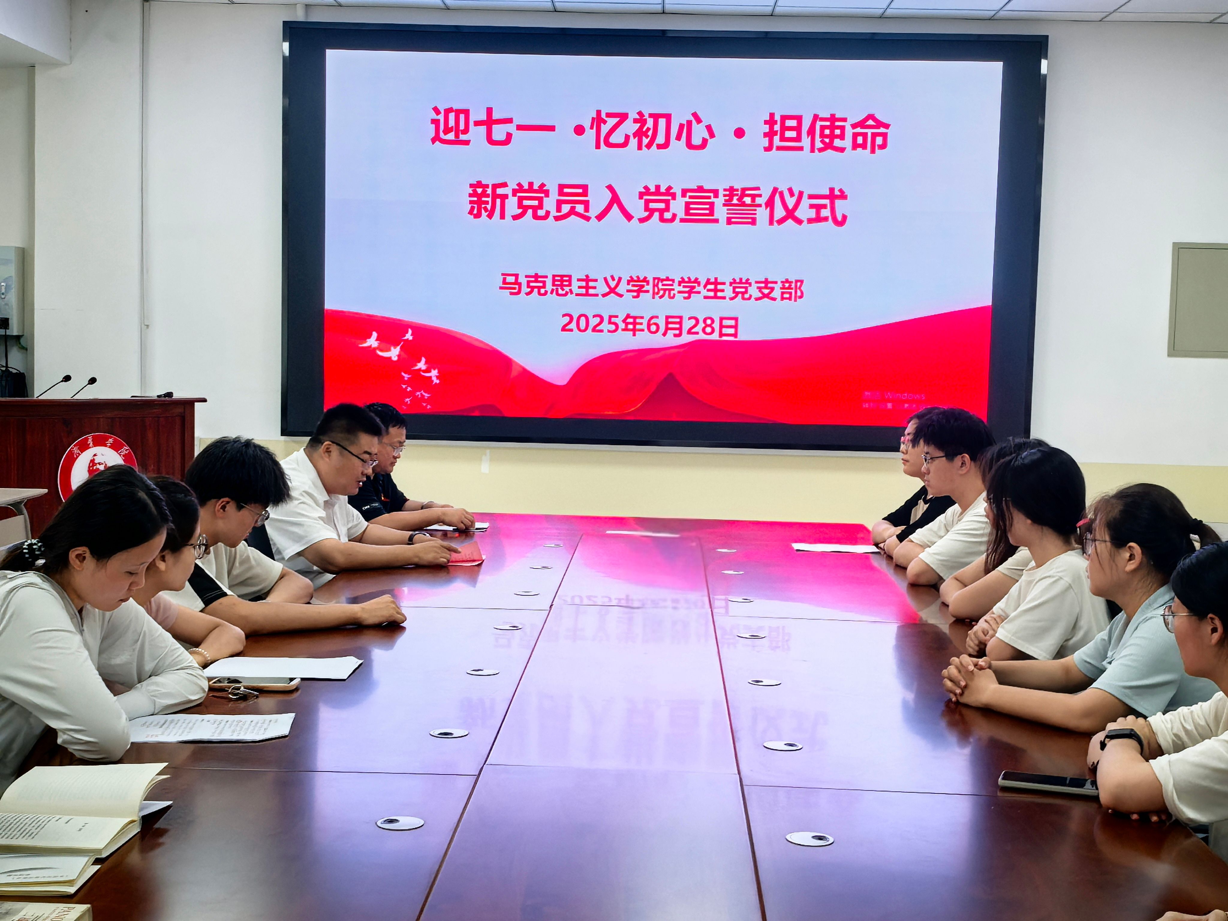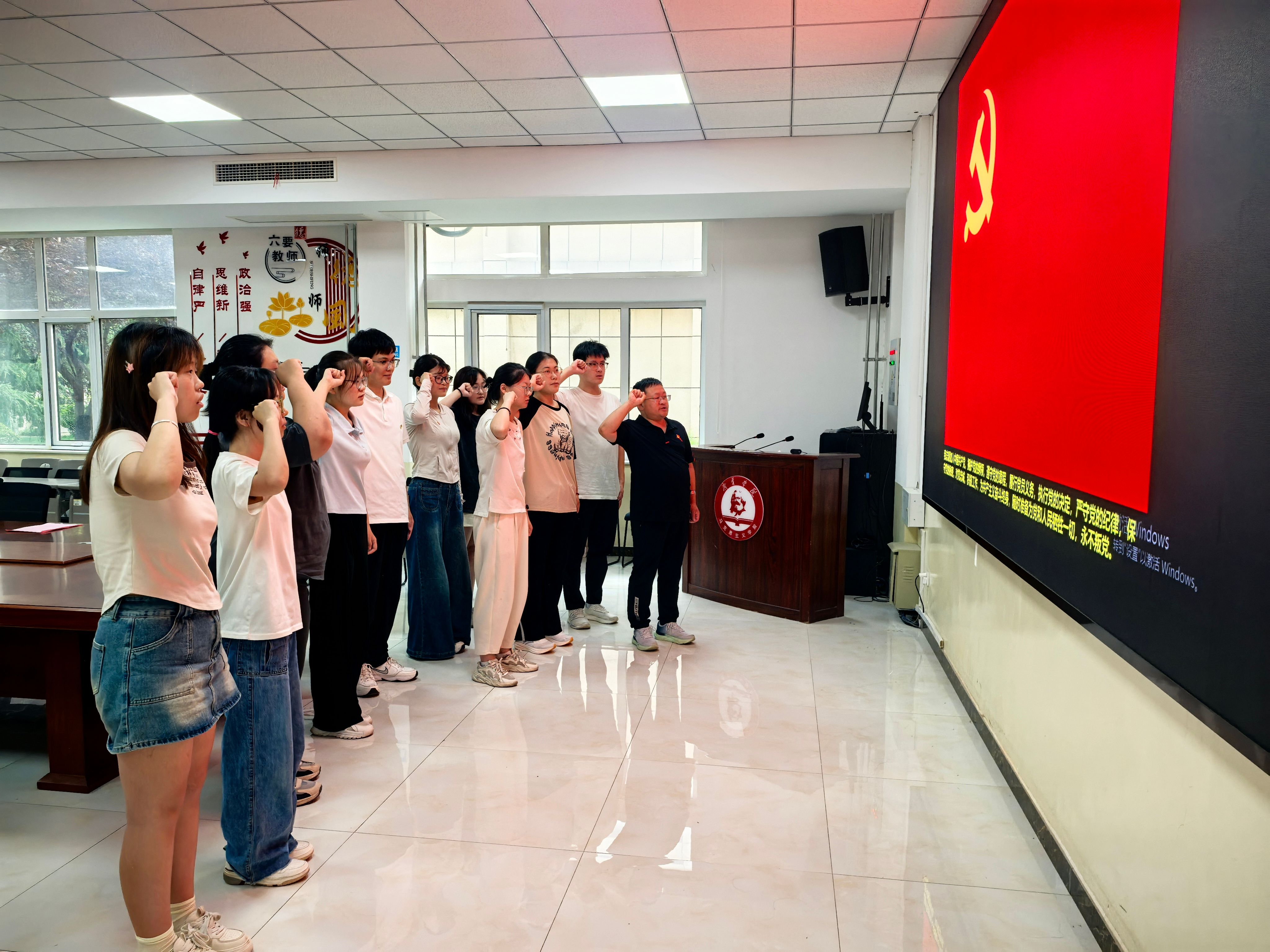 为深入教育引导新党员铭记入党初心、强化党员意识、提升党性修养、坚定理想信念,6月28日,在中国共产党成立104周年之际,马克思主义学院学生党支部举行新党员入党宣誓仪式。学院党委书记李效民出席仪式并讲话,2025年上半年新接收的6名学生预备党员,部分老党员和入党积极分子参加。入党宣誓仪式由学生党支部书记姚海生主持。