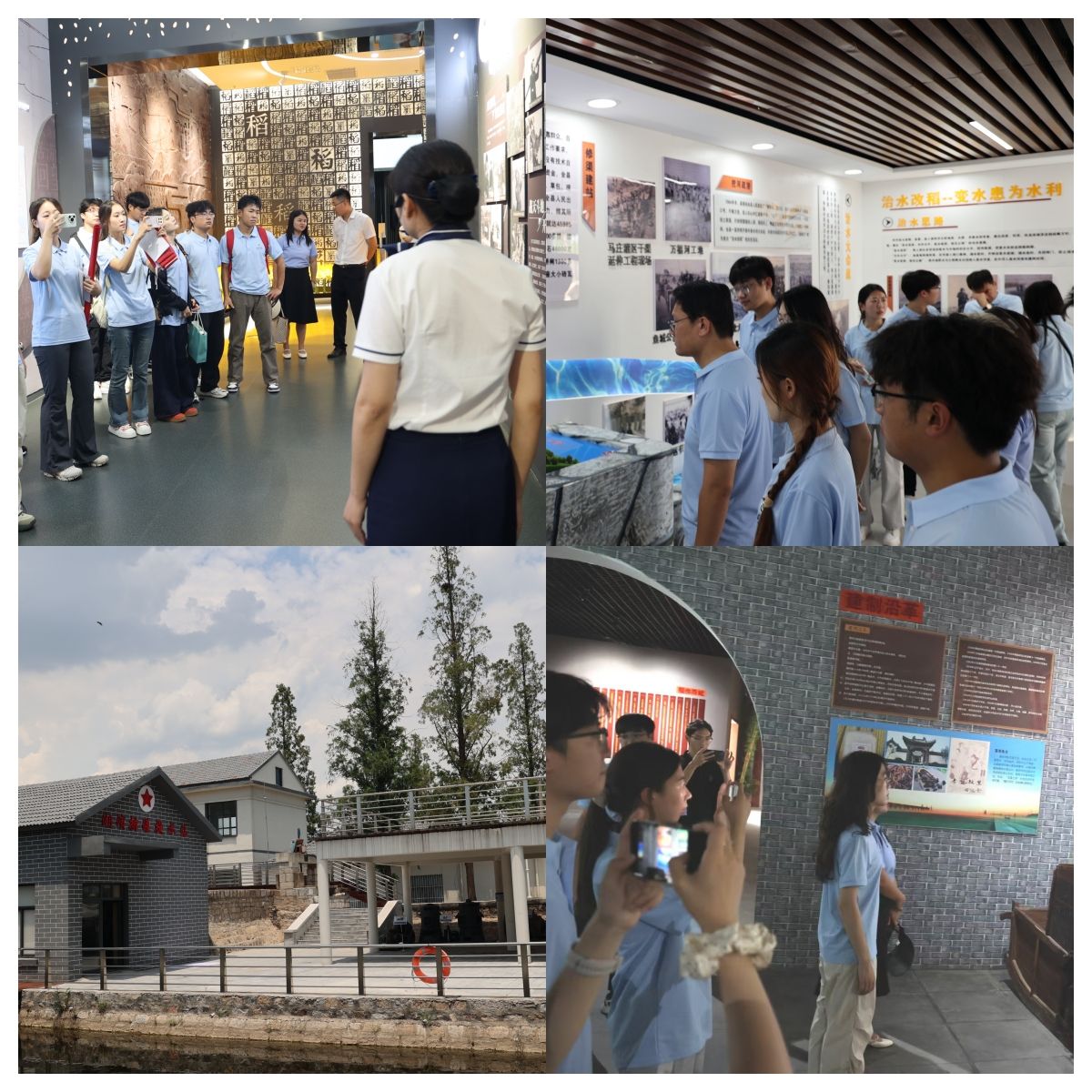 实践队通过沉浸式体验和直接对话,深切感受历史的脉动。在稻改馆、稻米文化博览馆和排灌站,队员们仔细观摩馆藏的历史照片、规划图纸和原始农具。这些珍贵实物默默讲述着鱼台干部群众在涝洼困境中,以“旱改水”的英勇行动挑战自然、重塑家园的辉煌历史。队员们从中深刻体悟到“居弱图强、同心同德、艰苦奋斗、拼搏奉献”的稻改精神内核。