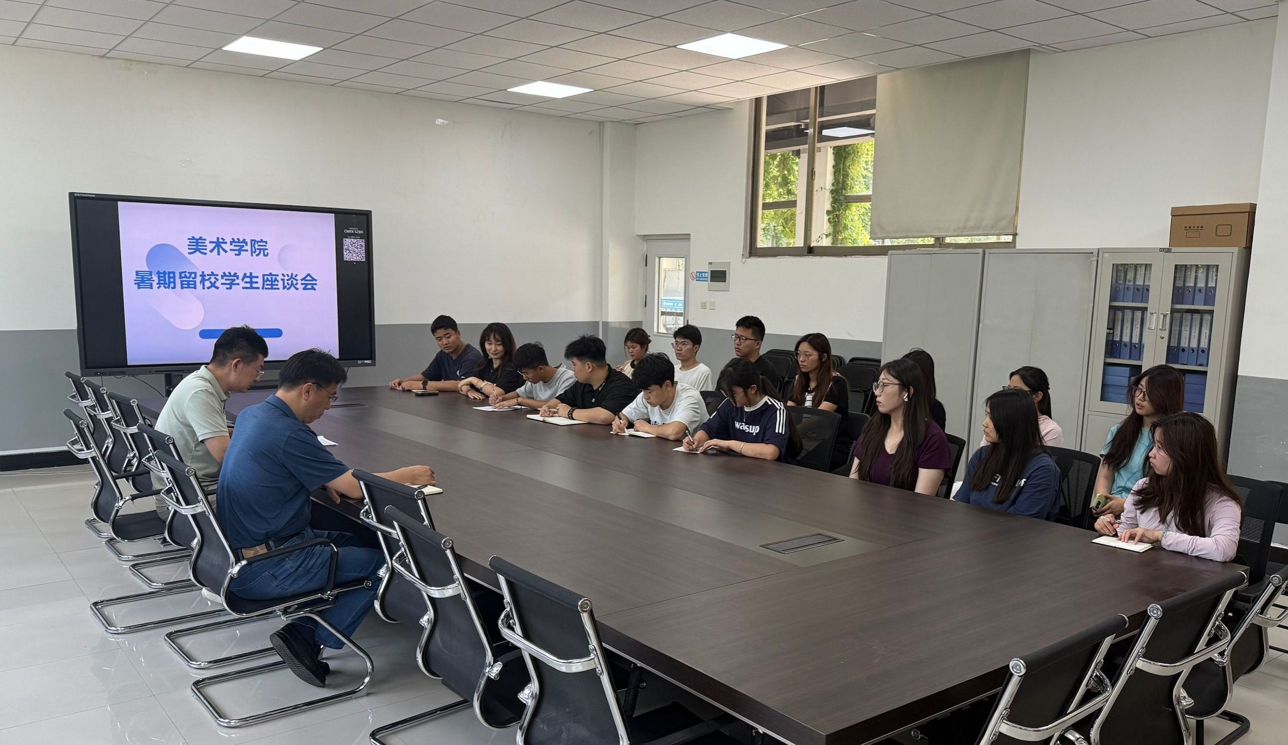 为切实做好暑期留校学生服务保障工作,7月3日至4日,美术学院分别在曲阜校本部和高新区大学园A3-801自习室召开暑期留校学生座谈会。美术学院党委副书记胡国梁、团委副书记林松、辅导员朱润昂与50余名暑期留校学生代表共同参会。