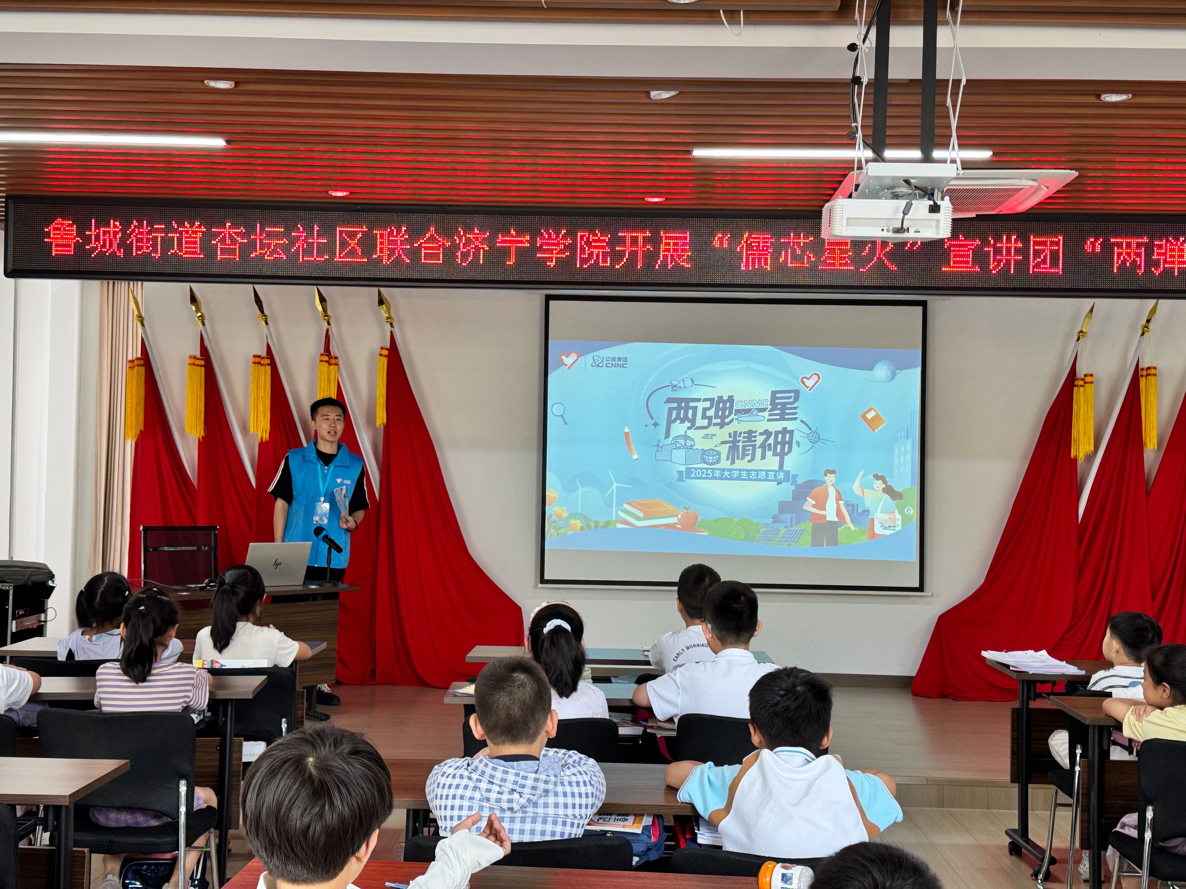7月中上旬,计算机科学与工程学院“儒芯星火”宣讲团走进曲阜市鲁城街道南池、杏坛、大成、奎文等社区,陆续开展暑期“两弹一星”精神与计算机科普融合的志愿宣讲活动。宣讲团成员化身“历史讲述者”,通过珍贵的影像资料将“两弹一星”的研制历程娓娓道来。宣讲团成员巧妙地将计算机的发展历程与“两弹一星”精神相联系,从早期老一辈科学家用算盘计算实验数据的艰辛、计算机运算速度缓慢的局限,到如今智能设备的广泛普及,算法、芯片等技术难题的不断突破。通过从无到有的生动对比,社区学生们深刻理解了“两弹一星”精神对科技发展的强大赋能,激发了他们对科学技术的浓厚兴趣和探索欲望。社区学生们踊跃发言,纷纷表达了对老一辈科学家的由衷敬仰,更道出了长大后为祖国建设贡献力量的坚定决心。