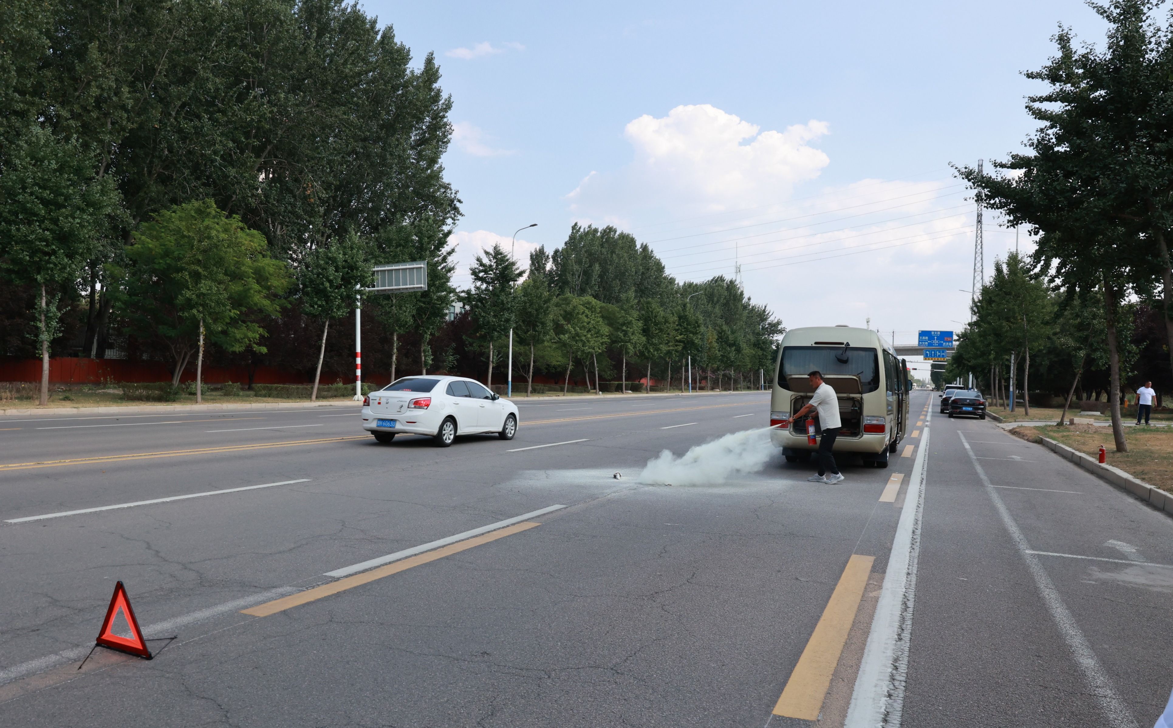 本次演练聚焦实战需求,模拟了两个典型场景:一是公务车高速行驶中与前车追尾,导致车辆自燃及乘车人员受伤;二是公务车在高温天气行驶时突发自燃。