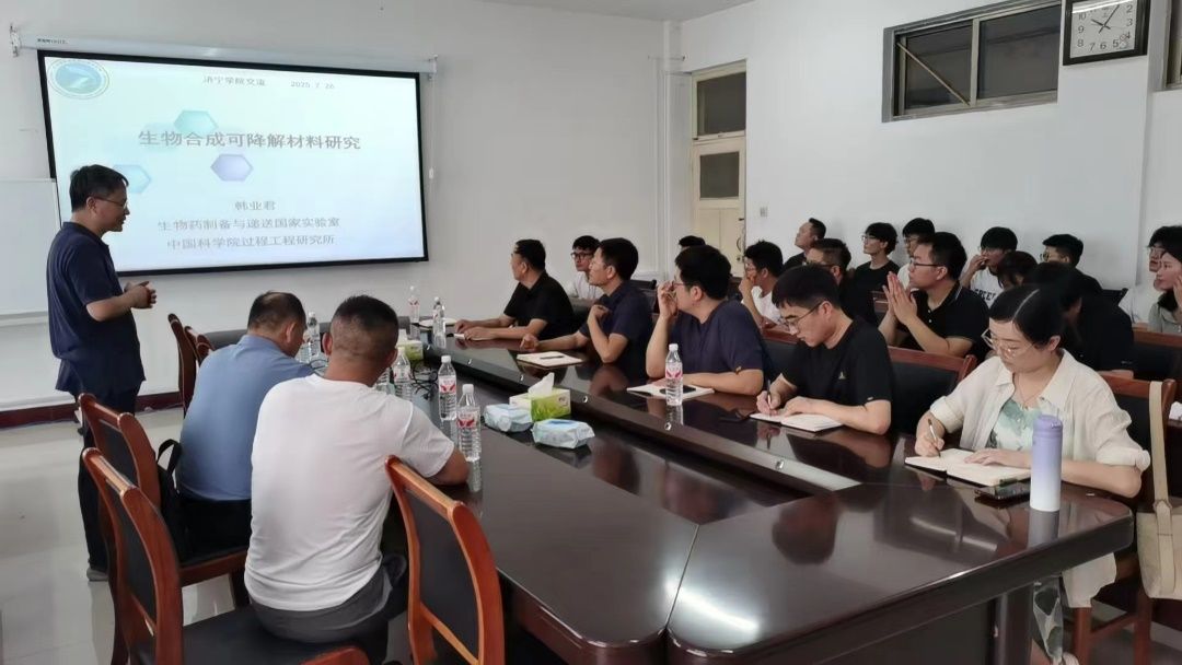 为进一步加强学科建设、拓展学术视野,7月26日,生命科学与工程学院于校内举办“生物合成可降解材料研究”学术报告会。本次报告会特别邀请中国科学院过程工程研究所韩业君研究员担任主讲,山东沪家生物科技有限公司总经理侯庆常、麦德乐(山东)食品配料有限公司总经理李灿兴、山东焦点福瑞达生物股份有限公司副总经理康传利等企业代表,学院青年博士教师及相关专业学生共同参与。报告会由院长赵强主持。